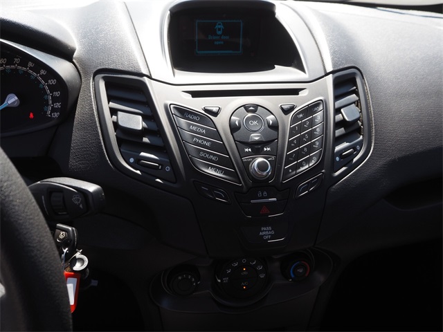 Odometer is 21637 miles below market average!27/37 City/Highway MPGShadow Black 2017 Ford Fiesta S FWD 6-Speed Automatic 1.6L I4 Ti-VCTIf you don't drive here, you can't save here!Awards: * 2017 KBB.com Brand Image Awards * 2017 KBB.com 10 Most Awarded BrandsPrice may not include recon fee. Equipment Group 100A, 15" Steel Wheels w/Covers, 6 Speakers, ABS brakes, Air Conditioning, AM/FM radio, Bumpers: body-color, CD player, Cloth Front Bucket Seats, Driver door bin, Driver vanity mirror, Dual front impact airbags, Dual front side impact airbags, Electronic Stability Control, Emergency communication system: 911 Assist, Front anti-roll bar, Front Bucket Seats, Front reading lights, Front wheel independent suspension, Illuminated entry, Knee airbag, Low tire pressure warning, Occupant sensing airbag, Overhead airbag, Passenger door bin, Passenger vanity mirror, Power door mirrors, Power steering, Radio data system, Radio: AM/FM Stereo/CD Player/MP3 Capable, Rear window defroster, Remote keyless entry, Security system, Speed-sensing steering, Split folding rear seat, Steering wheel mounted audio controls, SYNC Communications & Entertainment System, Tachometer, Telescoping steering wheel, Tilt steering wheel, Traction control, and Variably intermittent wipers.