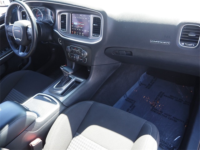 CARFAX One-Owner.Priced below KBB Fair Purchase Price!Frostbite 2022 Dodge Charger R/T RWD 8-Speed Automatic HEMI 5.7L V8 Multi Displacement VVT Black Cloth.If you don't drive here, you can't save here!Price may not include recon fee. Quick Order Package 26N, Black Cloth, 4-Wheel Disc Brakes, 6 Speakers, ABS brakes, Air Conditioning, Alloy wheels, AM/FM radio: SiriusXM, Anti-whiplash front head restraints, Apple CarPlay, Apple CarPlay/Android Auto, Auto-dimming Rear-View mirror, Automatic temperature control, Body Color Exterior Mirrors, Brake assist, Bumpers: body-color, Cloth Performance Seats, Compass, Delay-off headlights, Driver door bin, Driver vanity mirror, Dual front impact airbags, Dual front side impact airbags, Electronic Stability Control, Emergency communication system: SiriusXM Guardian, Four wheel independent suspension, Front anti-roll bar, Front Bucket Seats, Front Center Armrest, Front dual zone A/C, Front fog lights, Front License Plate Bracket, Front reading lights, Fully automatic headlights, Garage door transmitter: HomeLink, Google Android Auto, GPS Antenna Input, Heated door mirrors, Illuminated entry, Integrated Center Stack Radio, Integrated Voice Command w/Bluetooth, Knee airbag, Leather Shift Knob, Low tire pressure warning, Media Hub (2 USB, AUX), Occupant sensing airbag, Outside temperature display, Overhead airbag, Overhead console, Panic alarm, ParkView Rear Back-Up Camera, Passenger door bin, Passenger vanity mirror, Power 2-Way Driver Lumbar Adjust, Power door mirrors, Power driver seat, Power steering, Power windows, Radio: Uconnect 4C w/8.4" Display, Rear anti-roll bar, Rear reading lights, Rear seat center armrest, Rear window defroster, Remote keyless entry, Speed control, Speed-Sensitive Wipers, Split folding rear seat, Spoiler, Sport steering wheel, Steering wheel mounted audio controls, Tachometer, Telescoping steering wheel, Tilt steering wheel, Traction control, Trip computer, USB Host Flip, Variably intermittent wipers, and Wheels: 20" x 8" Satin Carbon Aluminum.
