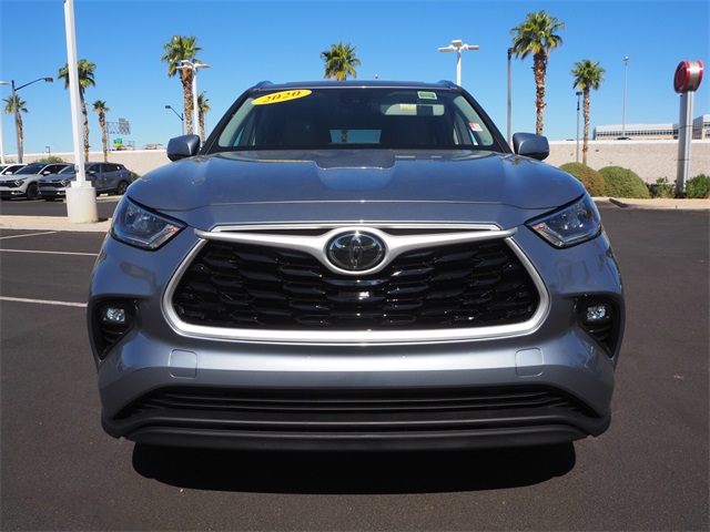 CARFAX One-Owner.21/29 City/Highway MPGGray 2020 Toyota Highlander XLE FWD 8-Speed Automatic 3.5L V6 DOHCIf you don't drive here, you can't save here!Price may not include recon fee. 18" Machined Alloy Wheels, 3.003 Axle Ratio, 3rd row seats: split-bench, 4-Wheel Disc Brakes, 6 Speakers, ABS brakes, Air Conditioning, Alloy wheels, AM/FM radio: SiriusXM, Apple CarPlay/Android Auto, Auto High-beam Headlights, Auto-dimming Rear-View mirror, Automatic temperature control, Brake assist, Bumpers: body-color, Delay-off headlights, Driver door bin, Driver vanity mirror, Dual front impact airbags, Dual front side impact airbags, Electronic Stability Control, Emergency communication system: Safety Connect with 3-year trial, Exterior Parking Camera Rear, Four wheel independent suspension, Front anti-roll bar, Front Bucket Seats, Front Center Armrest, Front dual zone A/C, Front fog lights, Front reading lights, Fully automatic headlights, Garage door transmitter: HomeLink, Heated door mirrors, Heated Front Bucket Seats, Heated front seats, Illuminated entry, Knee airbag, Leather Shift Knob, Low tire pressure warning, Occupant sensing airbag, Outside temperature display, Overhead airbag, Overhead console, Panic alarm, Passenger door bin, Passenger vanity mirror, Power door mirrors, Power driver seat, Power Liftgate, Power moonroof, Power passenger seat, Power steering, Power windows, Radio: Audio Plus (T1 Hi), Rear air conditioning, Rear anti-roll bar, Rear reading lights, Rear window defroster, Rear window wiper, Reclining 3rd row seat, Remote keyless entry, Roof rack: rails only, Security system, SofTex Seat Trim, Speed control, Speed-sensing steering, Split folding rear seat, Spoiler, Steering wheel mounted audio controls, Tachometer, Telescoping steering wheel, Tilt steering wheel, Traction control, Trip computer, Turn signal indicator mirrors, and Variably intermittent wipers.
