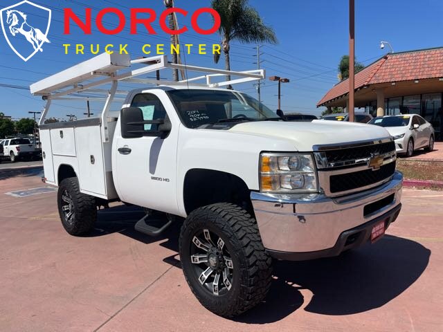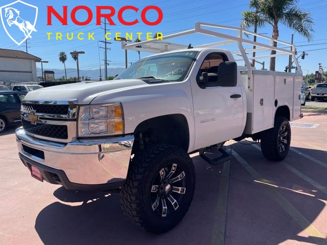 Introducing the 2014 Chevrolet Silverado 2500HD Work Truck Regular Cab 8' Utility with Ladder Rack - a reliable and powerful pickup truck designed to handle any heavy-duty job. This work truck is powered by a Vortec 6.0L Flex Fuel V8 engine that delivers 360 horsepower and 380 foot-pounds of torque, providing you with exceptional power and performance on the road. This Silverado 2500HD Work Truck comes standard with a range of impressive factory features that make it a top choice for any hardworking individual. It features a durable 8' utility bed with a ladder rack, providing you with ample space to transport your tools and equipment. The bed also comes equipped with side-mounted tie-downs to keep your cargo secure during transportation. Inside, the cabin of this truck is equipped with comfortable vinyl seats and a straightforward dashboard that puts everything within easy reach. Other standard features include air conditioning, a tilt-adjustable steering wheel, and a 4-speaker audio system that provides quality sound during your workday. Safety features on this Silverado 2500HD Work Truck include antilock brakes, stability control, and front-impact airbags, providing you with peace of mind on the road. Overall, the 2014 Chevrolet Silverado 2500HD Work Truck Regular Cab 8' Utility with Ladder Rack is a practical and powerful truck that can handle any job you throw at it. With its -- INSTALLED FEATURES: Air filtration, Front air conditioning, Front air conditioning zones: single, Front airbags: dual, Antenna type: element, Radio: AM/FM, Total speakers: 4, ABS: 4-wheel, Front brake diameter: 13.8, Front brake type: disc, Front brake width: 1.6, Rear brake diameter: 14.2, Rear brake type: disc, Rear brake width: 1.3, Armrests: front center, Floor material: rubber/vinyl, Assist handle: front, Cruise control, Cupholders: front, Power outlet(s): two 12V, Power steering, Reading lights: front, Steering wheel: tilt, Steering wheel mounted controls: cruise control, Storage: accessory hook, Vanity mirrors: dual, Axle ratio: 4.10, Alternator: 125 amps, Auxiliary engine cooler, Auxiliary oil cooler, Battery: heavy duty / maintenance-free, Battery rating: 600 CCA, Bumper detail: rear step, Door handle color: black, Exhaust tip color: stainless steel, Front bumper color: chrome, Grille color: chrome, Mirror color: black, Pickup bed light, Rear bumper color: chrome, Window trim: black, Clock, Gauge: oil pressure / tachometer, Multi-function display, Trip odometer, Warnings and reminders: low fuel level / turn off headlights, Daytime running lights, Headlights: auto on/off / halogen, Side mirror adjustments: manual / manual folding, Front seatbelts: 3-point, Seatbelt pretensioners: front, Seatbelt warning sensor: front, Driver seat manual adjustments: height / reclining, Front headrests: adjustable / 2, Front seat type: 40-20-40 split bench, Passenger seat manual adjustments: reclining, Upholstery: vinyl, Anti-theft system: alarm, Hill holder control, Roll stability control, Stability control, Traction control, Trailer stability control, Steering ratio: 16.1, Turns lock-to-lock: 3.6, Front shock type: twin-tube gas, Front spring type: torsion bars, Front stabilizer bar: diameter 36 mm, Front suspension classification: independent, Front suspension type: short and long arm, Rear shock type: twin-tube gas, Rear spring type: leaf, Rear suspension classification: solid live axle, Rear suspension type: multi-leaf, Tuned suspension: heavy duty, Spare tire mount location: underbody, Spare tire size: full-size, Spare wheel type: steel, Tire Pressure Monitoring System, Tire type: all season, Wheels: steel, Auxiliary transmission fluid cooler, Tow hooks: front, Tow/Haul mode, Front wipers: variable intermittent, Solar-tinted glass