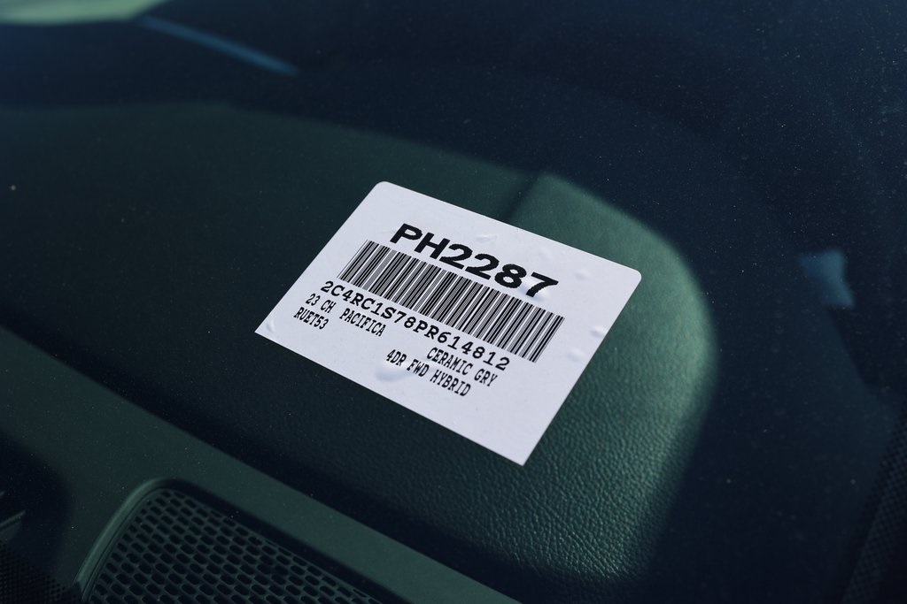Ceramic Gray Clearcoat 2023 Chrysler Pacifica Hybrid Hybrid Limited FWD CVT 3.6L V6 3.6L V6, ABS brakes, Active Cruise Control, Alloy wheels, Bumpers: body-color, Compass, Electronic Stability Control, Front dual zone A/C, Heated door mirrors, Heated front seats, Illuminated entry, Low tire pressure warning, Navigation System, Power door mirrors, Power Liftgate, Power moonroof, Remote keyless entry, Spoiler, Traction control, Turn signal indicator mirrors. Price includes: $3000 - 2023 CDJ Retail Bonus Cash 23CPA1. Exp. 04/30/2024