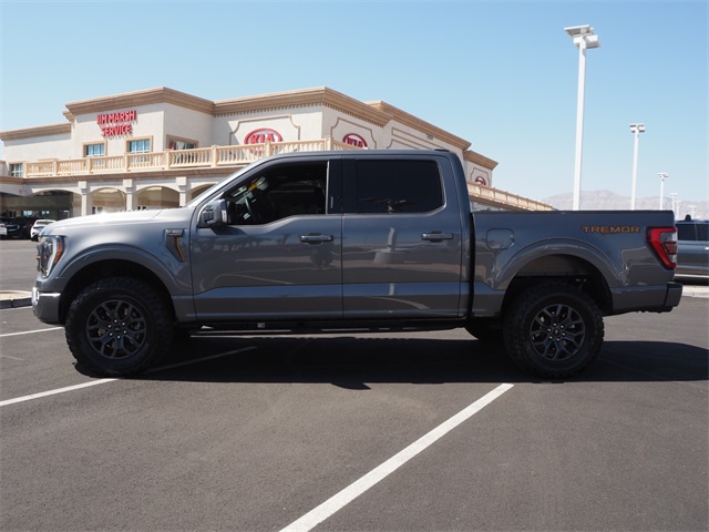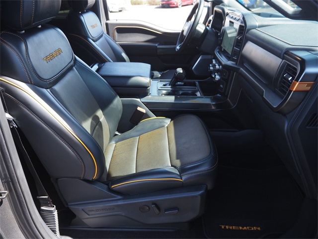 Recent Arrival!Gray Metallic 2023 Ford F-150 TREMOR 4WD 10-Speed Automatic 3.5L V6 EcoBoost 4WD.If you don't drive here, you can't save here!Price may not include recon fee. Bed Utility Package (BoxLink, Power Tailgate, and Tailgate Step w/Tailgate Work Surface), FX4 Off-Road Package (4x4 FX4 Off-Road Bodyside Decal, Electronic Locking w/3.31 Axle Ratio, Hill Descent Control, and Tray Style Floor Liner), Trailer Tow Package (Class IV Trailer Hitch Receiver and Integrated Trailer Brake Controller), 4WD, 20" Machined-Aluminum Wheels, 3.31 Axle Ratio, 360 Degree Camera, 4-Wheel Disc Brakes, 8 Speakers, ABS brakes, Adjustable pedals, Air Conditioning, Alloy wheels, AM/FM radio: SiriusXM with 360L, AppLink/Apple CarPlay and Android Auto, Auto High-beam Headlights, Auto Start-Stop Removal (DISC), Auto tilt-away steering wheel, Auto-dimming door mirrors, Auto-dimming Rear-View mirror, Automatic temperature control, Brake assist, Compass, Delay-off headlights, Driver door bin, Driver vanity mirror, Dual front impact airbags, Dual front side impact airbags, Electronic Locking w/3.73 Axle Ratio, Electronic Stability Control, Emergency communication system: SYNC 4 911 Assist, Extended Range 36 Gallon Fuel Tank, Exterior Parking Camera Rear, Front anti-roll bar, Front Bucket Seats, Front Center Armrest, Front dual zone A/C, Front fog lights, Front reading lights, Front wheel independent suspension, Fully automatic headlights, Garage door transmitter, Genuine wood console insert, Genuine wood dashboard insert, Genuine wood door panel insert, Heated door mirrors, Heated front seats, Heated rear seats, Heated steering wheel, Illuminated entry, Inclination/Intrusion Sensor Removal, Interior Work Surface, TREMOR Leather Bucket Seats, LED Sideview Mirror Spotlights, Low tire pressure warning, Memory seat, Multicontour Seats w/Active Motion Removal, Occupant sensing airbag, Outside temperature display, Overhead airbag, Overhead console, Panic alarm, Passenger door bin, Passenger vanity mirror, Pedal memory, Power door mirrors, Power driver seat, Power passenger seat, Power steering, Power windows, Radio data system, Radio: B&O Sound System by Bang & Olufsen, Radio: B&O Unleashed Sound System by Bang & Olufsen, Rain sensing wipers, Rear reading lights, Rear seat center armrest, Rear step bumper, Rear window defroster, Remote keyless entry, Security system, Speed control, Speed-sensing steering, Split folding rear seat, Steering Wheel Heat Removal (DISC), Steering wheel memory, Steering wheel mounted audio controls, SYNC 4 w/Enhanced Voice Recognition, Tachometer, Telescoping steering wheel, Tilt steering wheel, Traction control, Trip computer, Turn signal indicator mirrors, Twin Panel Moonroof, Variably intermittent wipers, Ventilated front seats, and Voltmeter.