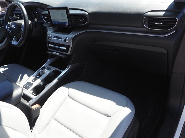 Priced below KBB Fair Purchase Price!Odometer is 9057 miles below market average!21/28 City/Highway MPGWhite 2021 Ford Explorer XLT RWD 10-Speed Automatic 2.3L EcoBoost I-4 ** BLUETOOTH / HANDS FREE **, ** MOONROOF **, NAVIGATION, Navigation System.If you don't drive here, you can't save here!Price may not include recon fee. Class III Trailer Tow Package (SelectShift Capability w/Paddle Shifters), Equipment Group 202A (Acoustic-Laminated Front Side Windows, ActiveX Captain's Chairs, Heated Steering Wheel, LED Fog Lamps, and Remote Start System), Ford Co-Pilot360 Assist+ (Evasive Steering Assist, Intelligent Adaptive Cruise Control, Speed Sign Recognition, and Voice-Activated Touchscreen Navigation System), XLT Sport Appearance Package (Wheels: 20" 10-Spoke Carbonized Gray-Painted), Navigation System, 1st Row Heated Seats, 3.58 Non-Limited-Slip Rear Axle Ratio, 3rd row seats: bench, 4-Wheel Disc Brakes, 6 Speakers, ABS brakes, Air Conditioning, Alloy wheels, AM/FM radio: SiriusXM, AM/FM Stereo, Auto High-beam Headlights, Automatic temperature control, Brake assist, Bumpers: body-color, Compass, Delay-off headlights, Driver door bin, Driver vanity mirror, Dual front impact airbags, Dual front side impact airbags, Electronic Stability Control, Emergency communication system: SYNC 3 911 Assist, Exterior Parking Camera Rear, FordPass Connect, Four wheel independent suspension, Front anti-roll bar, Front Bucket Seats, Front Center Armrest, Front dual zone A/C, Front reading lights, Fully automatic headlights, Heated door mirrors, Heated front seats, Illuminated entry, Knee airbag, Low tire pressure warning, Occupant sensing airbag, Outside temperature display, Overhead airbag, Overhead console, Panic alarm, Passenger door bin, Passenger vanity mirror, Power door mirrors, Power driver seat, Power Liftgate, Power passenger seat, Power steering, Power windows, Rear air conditioning, Rear anti-roll bar, Rear reading lights, Rear window defroster, Rear window wiper, Remote keyless entry, Roof rack: rails only, Security system, Speed control, Speed-sensing steering, Speed-Sensitive Wipers, Split folding rear seat, Spoiler, Steering wheel mounted audio controls, SYNC 3 Communications & Entertainment System, SYNC 3/Apple CarPlay/Android Auto, Tachometer, Telescoping steering wheel, Tilt steering wheel, Traction control, Trip computer, Twin Panel Moonroof, Unique Cloth Captain's Chairs, Variably intermittent wipers, and Wheels: 18" 5-Spoke Sparkle Silver-Painted Alum.