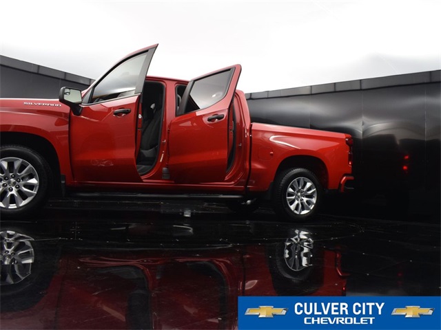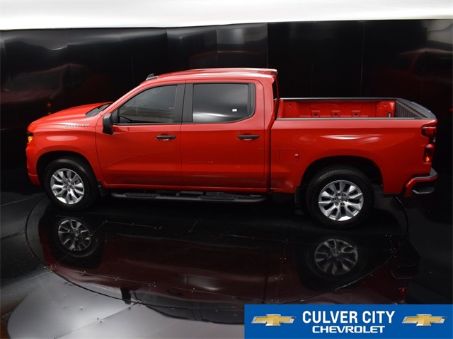 This 2022 Chevrolet Silverado 1500 Custom truck is a rugged and capable full-size pickup truck is bold in its Red Hot hue. The chiseled exterior design and iconic Chevrolet grille exudes a strong and traditional truck presence. Inside, the Silverado 1500 Custom offers a spacious and functional cabin, featuring comfortable seating and straightforward controls. This Custom trim level is well-equipped with modern technology, including a user-friendly infotainment system, smartphone integration, and a 7-inch touchscreen. Under the hood, it comes with a choice of powertrains, typically a robust V8 engine and 2.7 Liter TURBO, ensuring robust towing and hauling capabilities. The 2022 Chevrolet Silverado 1500 Custom is an ideal choice for those who require a dependable and work-ready pickup truck without sacrificing modern amenities and style.VIP LOYALTY PROGRAM When you purchase a new Chevrolet or Certified Pre-Owned Chevy, Buick, GMC or Cadillac from Culver City Chevrolet, you will be enrolled in our VIP Loyalty Program and receive the following VIP privileges for as long as you own your vehicle: *FREE Lube, Oil, and Filter Changes *FREE Car Washes *Courtesy Loaner Vehicle *And more! SAVE OVER $6,500 BASED ON AVERAGE SERVICE OVER 5 YEARS!At Culver City Chevrolet, our entire team works together to provide you with the ultimate Chevrolet shopping experience. We are family owned and operated, so we treat you just like you are part of our family. We are also very passionate about serving the community in which we work, live and play! From the Little League teams we support, to the next customer that walks in the door, we are committed to doing the right thing. Our goal is to exceed your expectations, deliver the best service possible, and make car shopping fun again. We offer a large inventory of Chevrolet cars, trucks, SUVs and electric vehicles, and an incredible lineup of luxury vehicles for sale as well! Just find the specific vehicle that fits your needs and schedule your test drive by calling 424-216-6027 today. We provide plenty of buying and leasing options for drivers in the Los Angeles area. WE LOOK FORWARD TO BEING THE NEW AND USED CHEVROLET VEHICLE SOURCE FOR YOU IN CULVER CITY!Priced below KBB Fair Purchase Price! 2022 Chevrolet Silverado 1500 Custom Red Hot 2.7L Turbo 19/22 City/Highway MPG KBB Fair Market Range Low: $34,293CARFAX One-Owner. Clean CARFAX.GPS Tracking System-S.W.A.T. $1995, 4 doors, Alloy Wheels, Android Auto, Apple CarPlay/Android Auto, Automatic, Backup Camera, Bluetooth, Brake Assist, CarPlay, Keyless Entry, Keyless Start, Lane Departure Warning, Rear-Wheel Drive, Remote Start, Satellite Radio, Security System, Stability Control, Steering Wheel Controls, USB Port, EZ Lift Power Lock & Release Tailgate, 8-Speed Automatic, Black Cloth.