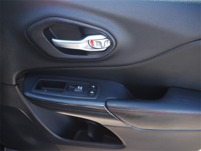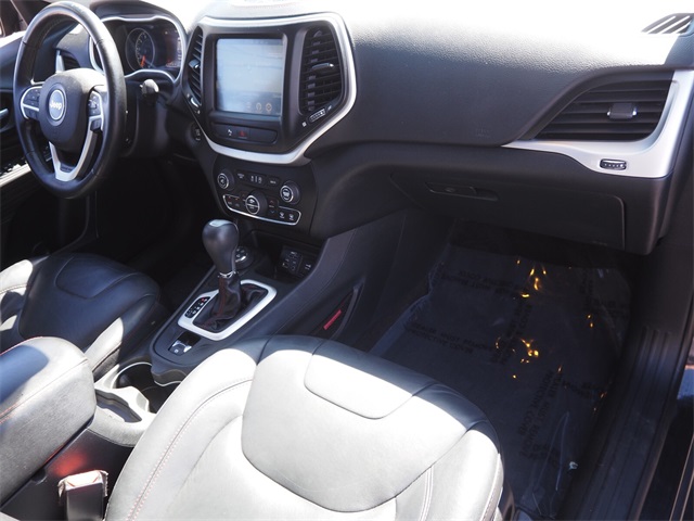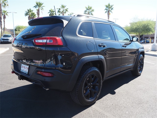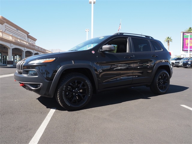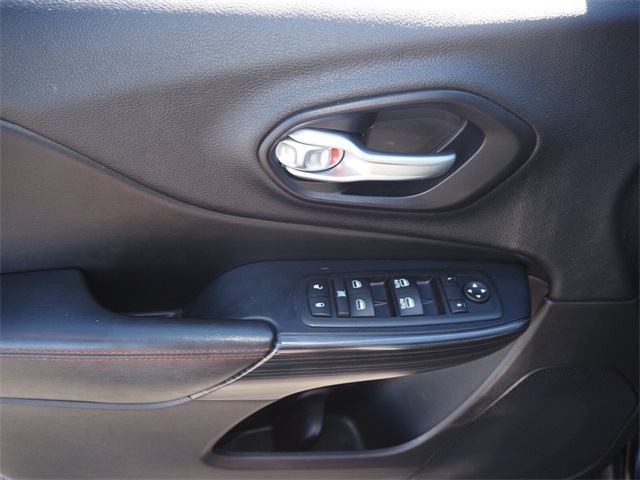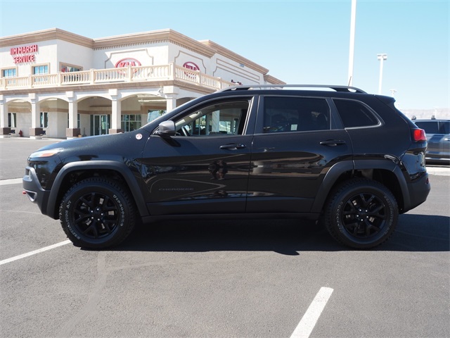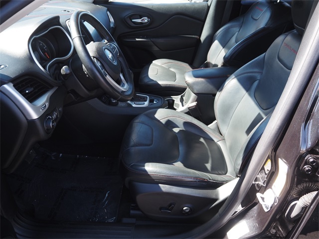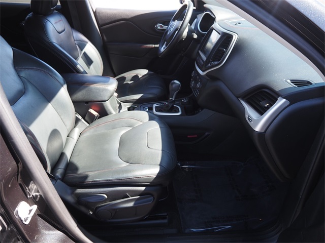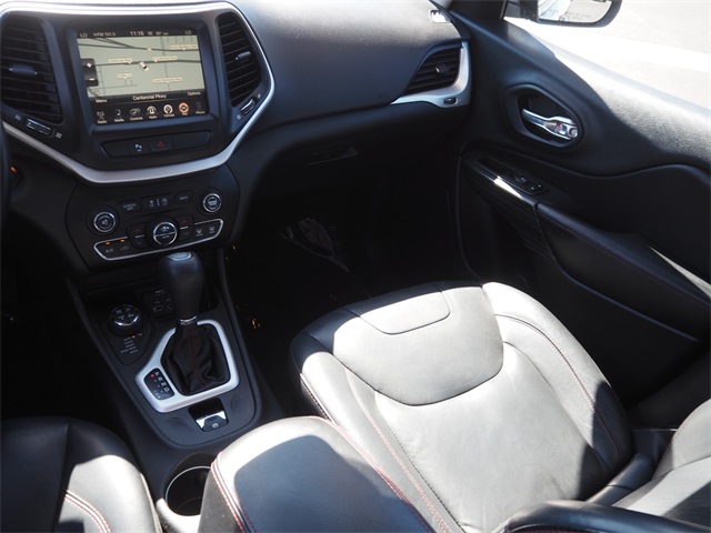 Odometer is 19380 miles below market average!19/26 City/Highway MPGBrilliant Black Crystal Pearlcoat 2016 Jeep Cherokee Trailhawk 4WD 9-Speed 948TE Automatic 3.2L V6If you don't drive here, you can't save here!Price may not include recon fee. Cold Weather Group (All-Season Floor Mats, Engine Block Heater, Exterior Mirrors w/Heating Element, Heated Front Seats, Heated Steering Wheel, Jeep Rack Off Road Accessory Kit, Power Heated Mirrors, Remote Start System, and Windshield Wiper De-Icer), Comfort/Convenience Group (Air Conditioning ATC w/Dual Zone Control, Humidity Sensor, Passive Entry/Keyless Go, Power 4-Way Driver Lumbar Adjust, Power 8-Way Driver Seat, Power Liftgate, Premium Air Filter, Rear-View Auto-Dimming Mirror w/Microphone, Remote Proximity Keyless Entry, Security Alarm, and Universal Garage Door Opener), Leather Interior Group (Leather Trimmed Bucket Seats), Quick Order Package 27E, SafetyTec (Blind Spot & Cross Path Detection, Exterior Mirrors Courtesy Lamps, Exterior Mirrors w/Supplemental Signals, ParkSense Rear Park Assist System, and Power Multi-Function Fold Away Mirrors), 1 Year Trial (Registration Required), 17" x 7.5" Aluminum Wheels, 3.25 Axle Ratio, 4.08 Axle Ratio, 4-Wheel Disc Brakes, 6 Speakers, 8.4" Touchscreen Display, 9 Amplified Speakers w/Subwoofer, ABS brakes, Accent Color Exterior Mirrors, Air Conditioning, Alloy wheels, AM/FM radio: SiriusXM, Anti-whiplash front head restraints, Auxiliary Transmission Oil Cooler, Brake assist, Cloth/Leather/Vinyl Bucket Seats, Compass, Delay-off headlights, Driver door bin, Driver vanity mirror, Dual front impact airbags, Dual front side impact airbags, Electronic Stability Control, Emergency communication system, Engine Oil Cooler, Four wheel independent suspension, Front anti-roll bar, Front Bucket Seats, Front Center Armrest, Front fog lights, Front reading lights, Fully automatic headlights, GPS Antenna Input, GPS Navigation, HD Radio, Illuminated entry, Integrated Voice Command w/Bluetooth, Knee airbag, Leather Shift Knob, Low tire pressure warning, Occupant sensing airbag, Off Road Suspension, Outside temperature display, Overhead airbag, Overhead console, Panic alarm, ParkView Rear Back-Up Camera, Passenger door bin, Passenger vanity mirror, Power door mirrors, Power Front/Fixed Rear Full Sunroof, Power steering, Power windows, Radio data system, Radio: Uconnect 8.4, Radio: Uconnect 8.4 NAV, Rear anti-roll bar, Rear reading lights, Rear seat center armrest, Rear side impact airbag, Rear window defroster, Rear window wiper, Remote keyless entry, Roof rack: rails only, Speed control, Speed-sensing steering, Split folding rear seat, Spoiler, Steering wheel mounted audio controls, Tachometer, Telescoping steering wheel, Tilt steering wheel, Traction control, Trip computer, Uconnect Access, Variably intermittent wipers, Voltmeter, and Wheels: 17" x 7.5" Black Painted Aluminum.