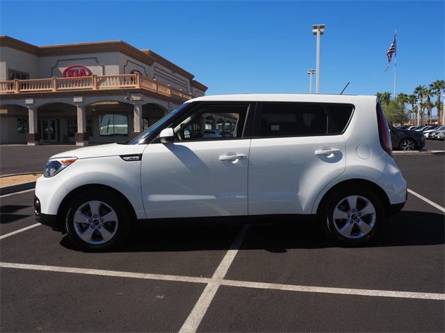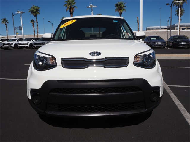 Recent Arrival!CARFAX One-Owner.Odometer is 28071 miles below market average!26/31 City/Highway MPGClear White 2019 Kia Soul FWD 6-Speed Automatic with Sportmatic I4If you don't drive here, you can't save here!Awards: * 2019 KBB.com 5-Year Cost to Own Awards * 2019 KBB.com 10 Coolest New Cars Under $20,000Price may not include recon fee. Kia Certified Pre-Owned Certified, 16" Alloy Wheels, 4-Wheel Disc Brakes, 6 Speakers, 6-Way Adjustable Driver's Seat, ABS brakes, Air Conditioning, Alloy wheels, AM/FM radio: SiriusXM, Brake assist, Bumpers: body-color, Carpeted Floor Mat, Cloth Seat Trim, Driver door bin, Driver vanity mirror, Dual front impact airbags, Dual front side impact airbags, Electronic Stability Control, Exterior Parking Camera Rear, Front anti-roll bar, Front Bucket Seats, Front Center Armrest, Front reading lights, Front wheel independent suspension, Fully automatic headlights, Illuminated entry, Low tire pressure warning, Occupant sensing airbag, Outside temperature display, Overhead airbag, Overhead console, Panic alarm, Passenger door bin, Passenger vanity mirror, Power door mirrors, Power steering, Power windows, Radio: AM/FM/MP3 Audio System, Rear window defroster, Rear window wiper, Remote keyless entry, Speed control, Speed-sensing steering, Split folding rear seat, Steering wheel mounted audio controls, Tachometer, Telescoping steering wheel, Tilt steering wheel, Traction control, Trip computer, and Variably intermittent wipers.
