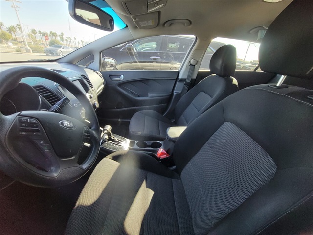 Recent Arrival!CARFAX One-Owner.Odometer is 44515 miles below market average!25/34 City/Highway MPGSilky Silver 2017 Kia Forte LX FWD 6-Speed Automatic 2.0L I4 DOHC Dual CVVTIf you don't drive here, you can't save here!Awards: * JD Power Initial Quality Study (IQS) * 2017 KBB.com 10 Most Awarded BrandsPrice may not include recon fee. LX Popular Plus Package (16" x 6.5J Alloy Wheels, Auto-On/Off Headlights, Chrome Exterior Door Handles, Cruise Control, Dual Illuminated Visor Vanity Mirrors, Front Fog Lights, Overhead Reading Light, Perimeter Approach Lighting, Power-Adjustable Heated Exterior Mirrors, Push Button Start w/Smart Key, Radio: UVO Link AM/FM/MP3/SiriusXM, Rear-Camera Display, and Supervision Meter Cluster), 15" x 6.0J Steel w/Full Wheel Covers Wheels, 4-Wheel Disc Brakes, 6 Speakers, ABS brakes, Air Conditioning, AM/FM radio: SiriusXM, Auto-Dimming Mirror w/Compass & HomeLink, Brake assist, Bumpers: body-color, Cargo Mat, Cargo Net, Cargo Tray, Carpeted Floor Mats, CD player, Delay-off headlights, Driver door bin, Driver vanity mirror, Dual front impact airbags, Dual front side impact airbags, Electronic Stability Control, Front anti-roll bar, Front Bucket Seats, Front Center Armrest, Front wheel independent suspension, Heated door mirrors, Illuminated entry, Leather Shift Knob, Low tire pressure warning, Occupant sensing airbag, Outside temperature display, Overhead airbag, Overhead console, Panic alarm, Passenger door bin, Passenger vanity mirror, Power door mirrors, Power steering, Power windows, Radio: AM/FM/CD/MP3/SiriusXM Audio System, Rear Bumper Applique, Rear seat center armrest, Rear window defroster, Rear window wiper, Remote keyless entry, Security system, Split folding rear seat, Spoiler, Steering wheel mounted audio controls, Tachometer, Telescoping steering wheel, Tilt steering wheel, Traction control, Trip computer, Variably intermittent wipers, and Woven Cloth Seat Trim.