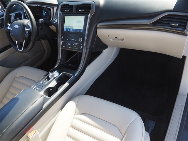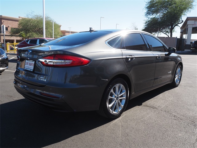Odometer is 4710 miles below market average!43/41 City/Highway MPGBlue 2019 Ford Fusion Hybrid SEL FWD eCVT I4 Hybrid I4 Hybrid.If you don't drive here, you can't save here!Price may not include recon fee. I4 Hybrid, 11 Speakers, 4-Wheel Disc Brakes, ABS brakes, ActiveX Heated Bucket Seats, Air Conditioning, Alloy wheels, AM/FM radio: SiriusXM, AppLink/Apple CarPlay and Android Auto, Auto High-beam Headlights, Auto-dimming door mirrors, Auto-dimming Rear-View mirror, Automatic temperature control, Brake assist, Bumpers: body-color, Compass, Delay-off headlights, Driver door bin, Driver vanity mirror, Dual front impact airbags, Dual front side impact airbags, Electronic Stability Control, Emergency communication system: 911 Assist, Exterior Parking Camera Rear, Four wheel independent suspension, Front anti-roll bar, Front Bucket Seats, Front Center Armrest, Front dual zone A/C, Front reading lights, Fully automatic headlights, Garage door transmitter, Heated door mirrors, Heated front seats, Illuminated entry, Knee airbag, Lane Departure Warning System, Low tire pressure warning, Memory seat, Navigation System, Occupant sensing airbag, Outside temperature display, Overhead airbag, Overhead console, Panic alarm, Passenger door bin, Passenger vanity mirror, Power door mirrors, Power driver seat, Power passenger seat, Power steering, Power windows, Radio data system, Radio: AM/FM/MP3 Premium Audio System, Rain sensing wipers, Rear anti-roll bar, Rear Parking Sensors, Rear reading lights, Rear seat center armrest, Rear window defroster, Remote keyless entry, Security system, Speed control, Speed-sensing steering, Speed-Sensitive Wipers, Split folding rear seat, Steering wheel mounted audio controls, SYNC 3 Communications & Entertainment System, Tachometer, Telescoping steering wheel, Tilt steering wheel, Traction control, Trip computer, Turn signal indicator mirrors, Variably intermittent wipers, and Wheels: 17" Sparkle Silver-Painted Aluminum.