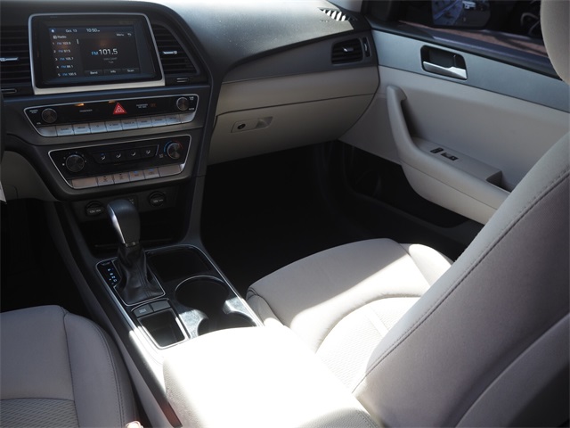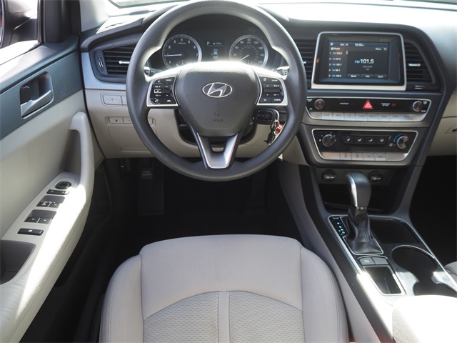 CARFAX One-Owner.Odometer is 3338 miles below market average!26/35 City/Highway MPGMachine Gray 2019 Hyundai Sonata SE FWD 6-Speed Automatic with Shiftronic 2.4L I4 DGI DOHC 16V Gray Cloth.If you don't drive here, you can't save here!Awards: * 2019 KBB.com 10 Most Comfortable Cars Under $30,000 * 2019 KBB.com 10 Best Sedans Under $30,000Price may not include recon fee. Gray Cloth, 16 x 6.5J Aluminum Alloy Wheels, 4-Wheel Disc Brakes, 6 Speakers, ABS brakes, Air Conditioning, Alloy wheels, AM/FM radio, Apple CarPlay & Android Auto, Brake assist, Bumpers: body-color, Carpeted Floor Mats, Delay-off headlights, Driver door bin, Driver vanity mirror, Dual front impact airbags, Dual front side impact airbags, Electronic Stability Control, Exterior Parking Camera Rear, Four wheel independent suspension, Front anti-roll bar, Front Bucket Seats, Front Center Armrest, Front reading lights, Fully automatic headlights, Illuminated entry, Knee airbag, Low tire pressure warning, Mud Guards, Occupant sensing airbag, Outside temperature display, Overhead airbag, Overhead console, Panic alarm, Passenger door bin, Passenger vanity mirror, Power door mirrors, Power steering, Power windows, Radio data system, Radio: AM/FM/MP3 Display Audio, Rear anti-roll bar, Rear Bumper Applique, Rear seat center armrest, Rear window defroster, Remote keyless entry, Security system, Speed control, Speed-sensing steering, Speed-Sensitive Wipers, Split folding rear seat, Steering wheel mounted audio controls, Tachometer, Telescoping steering wheel, Tilt steering wheel, Traction control, Trip computer, Variably intermittent wipers, Wheel Locks, and YES Essentials Premium Cloth Seating Surfaces.