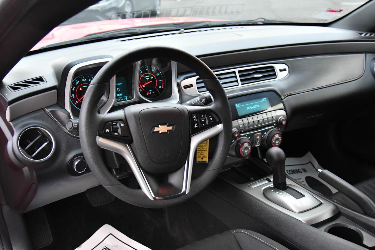 KBB.com Best Buy Awards Finalist. Only 51,330 Miles! Boasts 30 Highway MPG and 19 City MPG! Carfax One-Owner Vehicle. This Chevrolet Camaro delivers a Gas V6 3.6L/217 engine powering this Automatic transmission. WHEELS, 18 (45.7 CM) PAINTED ALUMINUM (STD), WHEEL AND TIRE, SPARE, COMPACT includes 18 (45.7 cm) steel spare wheel, TRANSMISSION, 6-SPEED AUTOMATIC includes TAPshift manual shift controls on steering wheel (STD).*This Chevrolet Camaro Comes Equipped with These Options *SEATS, FRONT SPORT BUCKET includes adjustable head restraints and folding rear seat with trunk pass-through (STD), RED HOT, LPO, FLOOR MATS premium carpeted, LPO, CARGO NET, LICENSE PLATE BRACKET, FRONT, ENGINE, 3.6L SIDI DOHC V6 VVT (323 hp [240.8 kW] @ 6800 rpm, 278 lb-ft of torque [375.3 N-m] @ 4800 rpm) (STD), BLACK, LS CLOTH SEAT TRIM, AUDIO SYSTEM, AM/FM STEREO WITH CD PLAYER MP3 playback capability, music navigator, Graphic Information Display (GID) and auxiliary input jack, includes outside temperature display (STD), 2LS PREFERRED EQUIPMENT GROUP includes Standard Equipment, Wipers, front intermittent.*Expert Reviews!*As reported by KBB.com: If you're looking for something as thrilling to drive as it is to showoff, the 2015 Chevy Camaro coupe or convertible can get the job done. Even the most basic model looks lean and mean, a testament to the power of the Camaro's design.