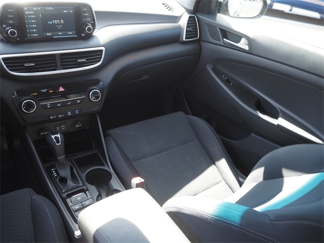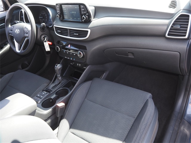Recent Arrival!23/30 City/Highway MPGDusk Blue 2019 Hyundai Tucson SE FWD 6-Speed Automatic with Shiftronic I4If you don't drive here, you can't save here!Price may not include recon fee. Option Group 01, 17" x 7.0J Alloy Wheels, 4-Wheel Disc Brakes, 6 Speakers, ABS brakes, Air Conditioning, Alloy wheels, AM/FM radio, Apple CarPlay & Android Auto, Axle Ratio: 3.510, Brake assist, Bumpers: body-color, Delay-off headlights, Driver door bin, Driver vanity mirror, Dual front impact airbags, Dual front side impact airbags, Electronic Stability Control, Exterior Parking Camera Rear, Four wheel independent suspension, Front anti-roll bar, Front Bucket Seats, Front Center Armrest, Front reading lights, Fully automatic headlights, Illuminated entry, Low tire pressure warning, Occupant sensing airbag, Outside temperature display, Overhead airbag, Overhead console, Panic alarm, Passenger door bin, Passenger vanity mirror, Power door mirrors, Power steering, Power windows, Radio: AM/FM Audio System, Rear anti-roll bar, Rear seat center armrest, Rear window defroster, Rear window wiper, Remote keyless entry, Security system, Speed control, Speed-sensing steering, Split folding rear seat, Spoiler, Steering wheel mounted audio controls, Tachometer, Telescoping steering wheel, Tilt steering wheel, Traction control, Trip computer, Variably intermittent wipers, and YES Essentials Cloth Seat Trim.