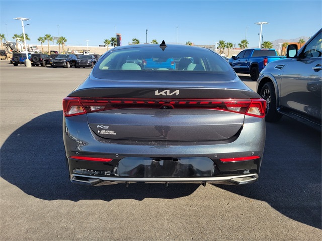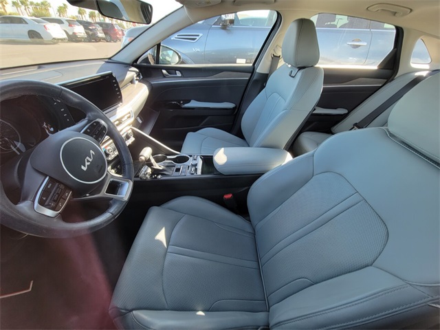 Priced below KBB Fair Purchase Price!Odometer is 12332 miles below market average!27/37 City/Highway MPGGravity Gray 2022 Kia K5 EX FWD 8-Speed Automatic I4If you don't drive here, you can't save here!Price may not include recon fee. EX Ash Blue Color Package, EX Premium Package (10-Way Power Passenger Seat, Active Sound Design, Auto Up/Down Rear Windows, Bose Premium Audio, Forward Collision Avoidance-Assist - Cyclist, Forward Collision Avoidance-Assist - Junction Turn, Heated Steering Wheel, LED Rear Combi Lamps, Memory Driver's Seat & Outside Mirrors, Navigation-Based Smart Cruise Control - Curve, Outside Mirrors w/LED Turn Signals, Parking Collision Avoidance-Assist - Reverse, Parking Distance Warning - Forward, Power Child Lock, Power Folding Outside Mirrors, Safe Exit Assist w/Lock, Smart Cruise Control w/Stop & Go, and Surround View Monitor), Kia Certified Pre-Owned Certified, 4-Wheel Disc Brakes, 6 Speakers, ABS brakes, Air Conditioning, Alloy wheels, AM/FM radio: SiriusXM, Apple CarPlay & Android Auto, Auto High-beam Headlights, Automatic temperature control, Brake assist, Bumpers: body-color, Carpeted Floor Mats, Delay-off headlights, Driver door bin, Driver vanity mirror, Dual front impact airbags, Dual front side impact airbags, Electronic Stability Control, Emergency communication system, Four wheel independent suspension, Front anti-roll bar, Front Bucket Seats, Front Center Armrest, Front dual zone A/C, Front reading lights, Fully automatic headlights, Heated & Ventilated Front Bucket Seats, Heated door mirrors, Heated front seats, Illuminated entry, Knee airbag, Leatherette Seat Trim, Low tire pressure warning, Navigation System, Occupant sensing airbag, Outside temperature display, Overhead airbag, Overhead console, Panic alarm, Passenger door bin, Passenger vanity mirror, Power door mirrors, Power driver seat, Power moonroof, Power steering, Power windows, Radio data system, Radio: AM/FM/MP3 Audio System, Rear anti-roll bar, Rear reading lights, Rear seat center armrest, Rear side impact airbag, Rear window defroster, Remote keyless entry, Security system, Speed control, Speed-sensing steering, Split folding rear seat, Steering wheel mounted audio controls, Tachometer, Telescoping steering wheel, Tilt steering wheel, Traction control, Trip computer, Variably intermittent wipers, Ventilated front seats, and Wheels: 7.5J x 18" Gray Machined Finish Alloy.