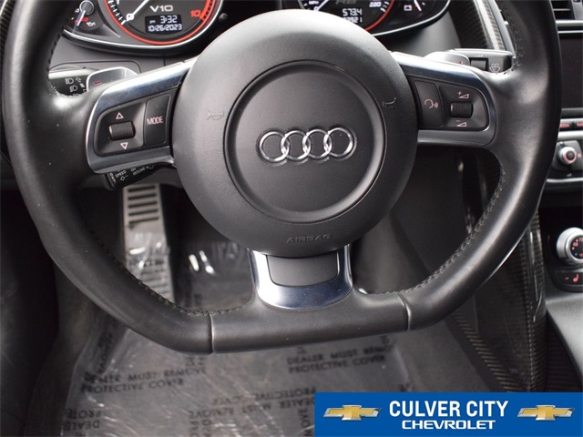 Recent Arrival!This black 2012 Audi R8 5.2 quattro coupe is priced to entice! This iconic supercar epitomizes performance and elegance. Powered by a magnificent 5.2-liter V10 engine, it delivers an astonishing 525 horsepower to all four wheels through Audi's quattro all-wheel drive system, resulting in breathtaking acceleration and exceptional handling. This classic R8 coupe exudes timeless design with its sleek lines and distinctive LED headlights. The interior is a masterpiece of craftsmanship, featuring luxurious materials, superbly comfortable sport seats, and cutting-edge technology. The 2012 Audi R8 5.2 quattro coupe is a rare and remarkable specimen, embodying the perfect synergy of power, style, and precision, making it a dream car for enthusiasts and collectors alike.At Culver City Chevrolet, our entire team works together to provide you with the ultimate Chevrolet shopping experience. We are family owned and operated, so we treat you just like you are part of our family. We are also very passionate about serving the community in which we work, live and play! From the Little League teams we support, to the next customer that walks in the door, we are committed to doing the right thing. Our goal is to exceed your expectations, deliver the best service possible, and make car shopping fun again. We offer a large inventory of Chevrolet cars, trucks, SUVs and electric vehicles, and an incredible lineup of luxury vehicles for sale as well! Just find the specific vehicle that fits your needs and schedule your test drive by calling 424-216-6027 today. We provide plenty of buying and leasing options for drivers in the Los Angeles area. WE LOOK FORWARD TO BEING THE NEW AND USED CHEVROLET VEHICLE SOURCE FOR YOU IN CULVER CITY!2012 Audi R8 5.2 quattro Black quattro 5.2L V10 FSI DOHC 13/19 City/Highway MPG Awards: * 2012 KBB.com Total Cost of Ownership AwardsClean CARFAX.GPS Tracking System-S.W.A.T. $1995, 2 doors, All-Wheel Drive, Alloy Wheels, Automatic, Brake Assist, Cruise Control, Heated Seats, Homelink, Keyless Entry, Leather Seats, Rain Sensing Wipers, Satellite Radio, Security System, Stability Control, Steering Wheel Controls, Black Leather.
