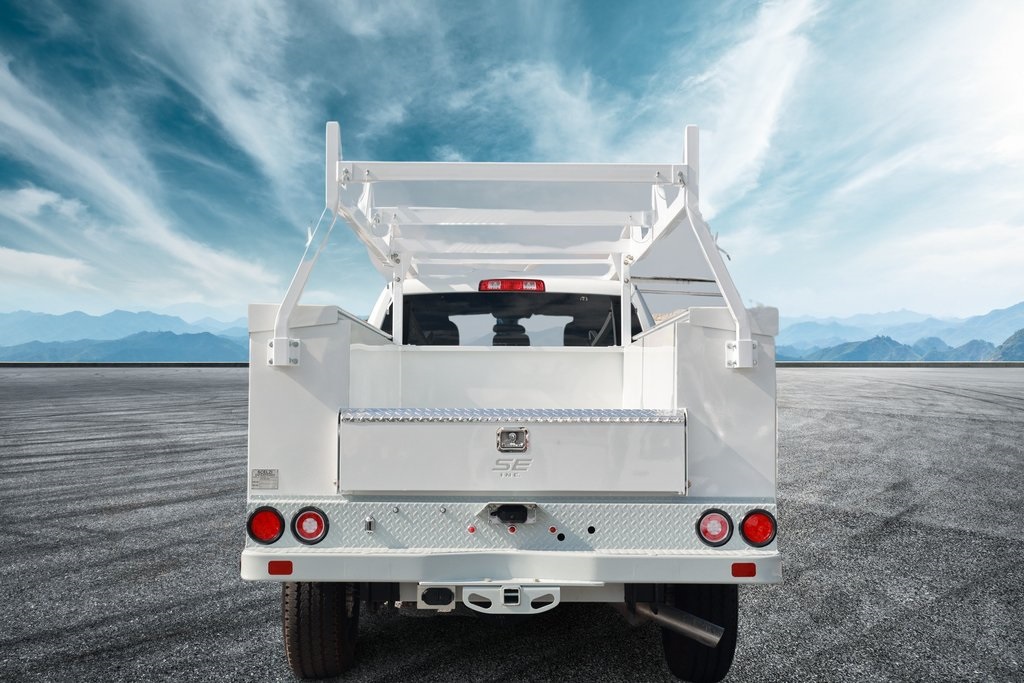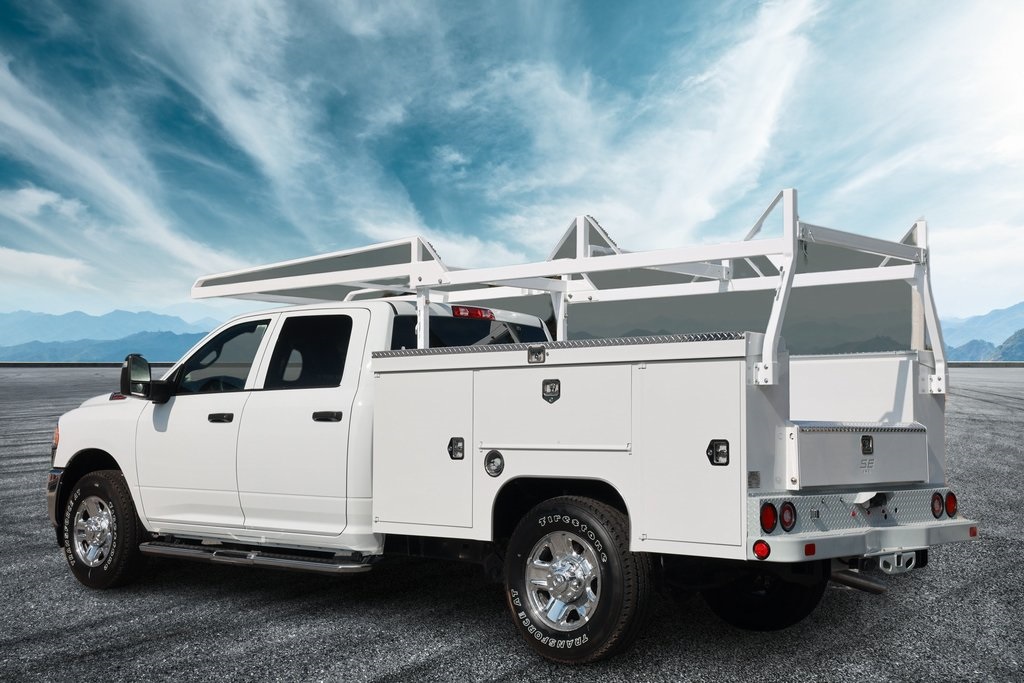 8ft Scelzi Service Body - Treadbright Pop Top Lids, Tapered Leg Ladder Rack w/ Hooks and Forklift Ready Swing Away Cross bars, 6" Diamond Plate Step Bumper, 2.5" Class V Tube Receiver w/ 2" Sleeve, Backup Camera Price includes: $1000 - 2023 RAM Commercial Truck Season Bonus Cash 39CP2. Exp. 01/02/2024 $1500 - 2023 Ram Bonus Cash 23CPA. Exp. 01/02/2024