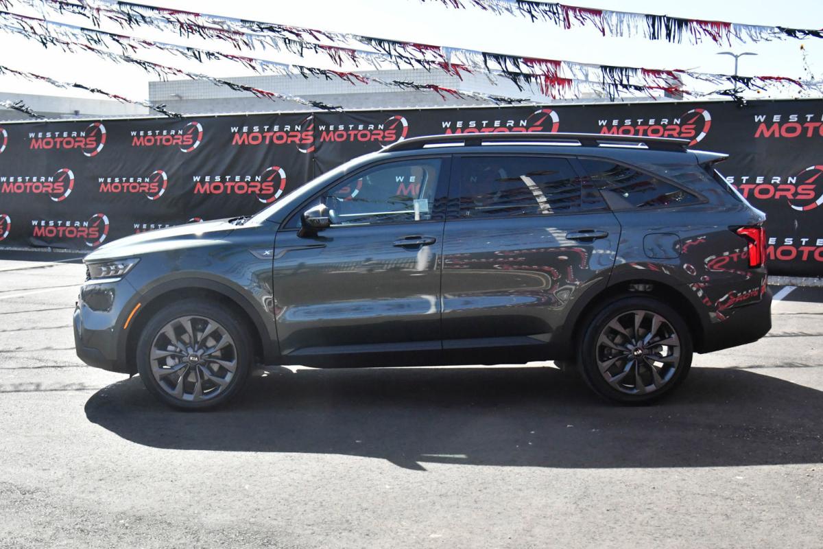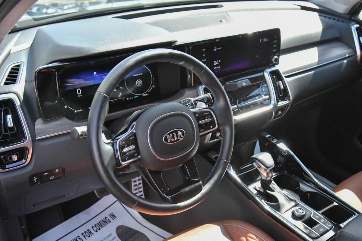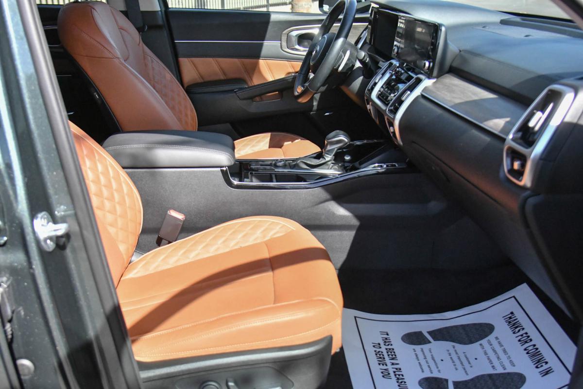 Only 12,011 Miles! Boasts 28 Highway MPG and 21 City MPG! This Kia Sorento boasts a Intercooled Turbo Regular Unleaded I-4 2.5 L/152 engine powering this Automatic transmission. X-LINE SX PRESTIGE RUST COLOR PACKAGE, CARPETED FLOOR MATS, BLACK, PERFORATED GENUINE LEATHER SEAT TRIM -inc: 3D embossed bolsters.*This Kia Sorento Comes Equipped with These Options *Wheels: 20 Grey Finish Alloy, Variable Intermittent Wipers, Trunk/Hatch Auto-Latch, Trip Computer, Transmission: 8-Speed DCT, Transmission w/Driver Selectable Mode and Sportmatic Sequential Shift Control, Tires: 255/45R20, Tire Specific Low Tire Pressure Warning, Tailgate/Rear Door Lock Included w/Power Door Locks, Surround View Monitor Back-Up Camera.