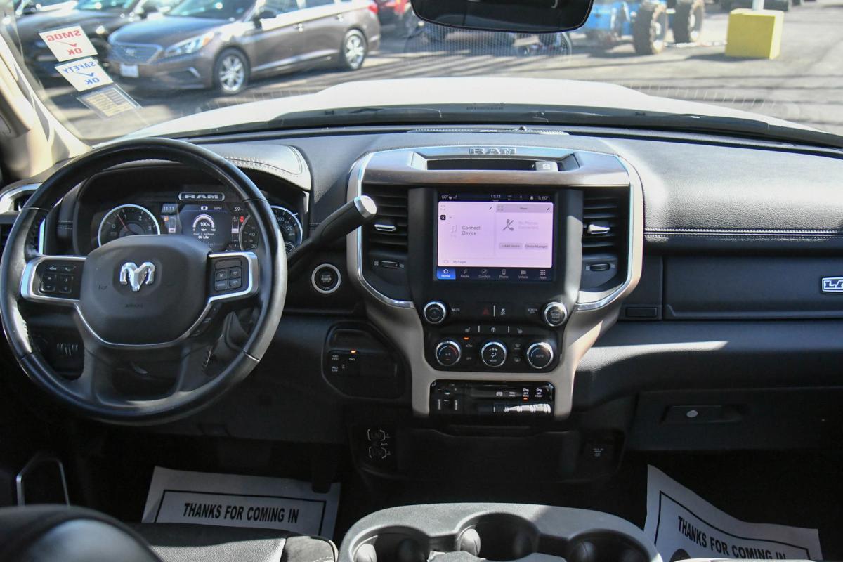 This Ram 2500 has a strong Intercooled Turbo Diesel I-6 6.7 L/408 engine powering this Automatic transmission. WHEELS: 18 X 8.0 POLISHED ALUMINUM (STD), TRANSMISSION: 6-SPEED AUTOMATIC (68RFE) -inc: Chrome Accent Shift Control, TOW HOOKS.*This Ram 2500 Features the Following Options *QUICK ORDER PACKAGE 2HH LARAMIE -inc: Engine: 6.7L I6 Cummins Turbo Diesel, Transmission: 6-Speed Automatic (68RFE) , TIRES: LT275/70R18E OWL ON/OFF ROAD, MONOTONE PAINT, MANUFACTURER'S STATEMENT OF ORIGIN, FRONT LICENSE PLATE BRACKET, ENGINE: 6.7L I6 CUMMINS TURBO DIESEL -inc: Selective Catalytic Reduction (Urea), Dual 730 Amp Maintenance Free Batteries, Cummins Turbo Diesel Badge, Heavy Duty Engine Cooling, Supplemental Heater, 220 Amp Alternator, Tow Hooks, Diesel Exhaust Brake, Front Bumper Sight Shields, Capless Fuel Fill w/o Discriminator, Distribution Services Tracking, BRIGHT WHITE CLEARCOAT, BLACK, LEATHER TRIM 40/20/40 BENCH SEAT, ANTI-SPIN DIFFERENTIAL REAR AXLE, 3.73 AXLE RATIO (STD).
