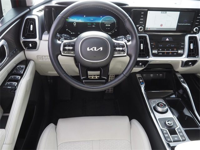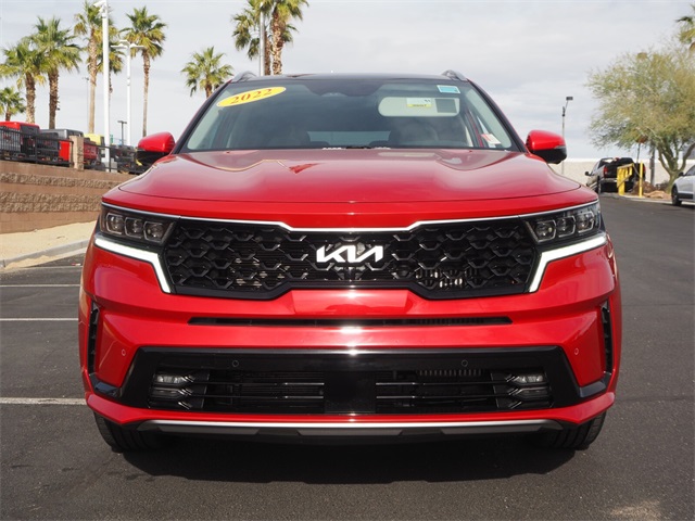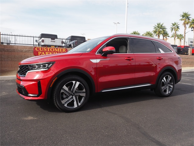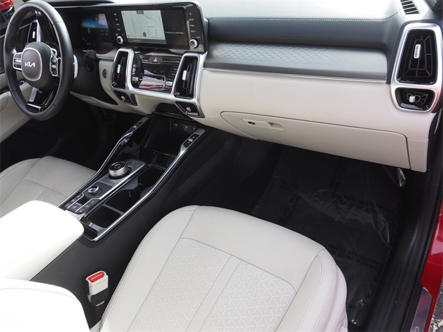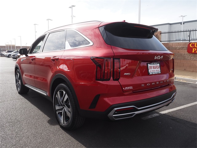 CARFAX One-Owner.Odometer is 15666 miles below market average!Runway Red 2022 Kia Sorento Plug-In Hybrid SX Prestige AWD 6-Speed Automatic 1.6L I4 DGI Hybrid Turbocharged DOHC 16V LEV3-ULEV70 1.6L I4 DGI Hybrid Turbocharged DOHC 16V LEV3-ULEV70.If you don't drive here, you can't save here!Price may not include recon fee. Panoramic Sunroof Package (LED Interior Lighting and Panoramic Power Sunroof), 1.6L I4 DGI Hybrid Turbocharged DOHC 16V LEV3-ULEV70, 12 Speakers, 3rd row seats: split-bench, 4-Wheel Disc Brakes, ABS brakes, Air Conditioning, Alloy wheels, AM/FM radio: SiriusXM, Apple CarPlay & Android Auto, Auto High-beam Headlights, Auto-dimming Rear-View mirror, Automatic temperature control, Axle Ratio: 3.648, Brake assist, Bumper Applique Texture, Bumpers: body-color, Cargo Net, Carpeted Floor Mats, Delay-off headlights, Driver door bin, Driver vanity mirror, Dual front impact airbags, Dual front side impact airbags, Electronic Stability Control, Emergency communication system: UVO Link, Four wheel independent suspension, Front anti-roll bar, Front Bucket Seats, Front Center Armrest, Front dual zone A/C, Front fog lights, Front reading lights, Fully automatic headlights, Genuine Perforated Leather Seat Trim, Heated & Ventilated Front Bucket Seats, Heated door mirrors, Heated front seats, Heated rear seats, Heated steering wheel, Illuminated entry, Knee airbag, Leather steering wheel, Low tire pressure warning, Memory seat, Navigation System, Occupant sensing airbag, Outside temperature display, Overhead airbag, Overhead console, Panic alarm, Passenger door bin, Passenger vanity mirror, Power door mirrors, Power driver seat, Power Liftgate, Power passenger seat, Power steering, Power windows, Radio data system, Radio: 10.25" Touchscreen Navigation w/SiriusXM, Rear air conditioning, Rear anti-roll bar, Rear reading lights, Rear window defroster, Rear window wiper, Remote keyless entry, Roof rack: rails only, Security system, Speed control, Speed-sensing steering, Split folding rear seat, Spoiler, Steering wheel mounted audio controls, Tachometer, Telescoping steering wheel, Tilt steering wheel, Traction control, Trip computer, Turn signal indicator mirrors, Variably intermittent wipers, Ventilated front seats, and Wheels: 19" Machine-Finished Alloy.