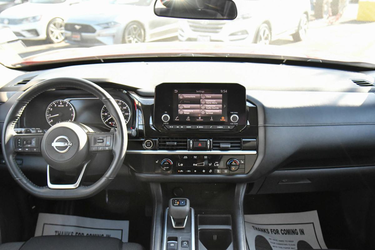 Delivers 26 Highway MPG and 21 City MPG! This Nissan Pathfinder delivers a Regular Unleaded V-6 3.5 L/213 engine powering this Automatic transmission. SCARLET EMBER TINTCOAT, CHARCOAL, CLOTH SEATING SURFACES, [L92] BENCH SEAT CARPETED FLOOR MATS (SET OF 4).*This Nissan Pathfinder Comes Equipped with These Options *[B93] CROSS BARS, [B92] BLACK SPLASH GUARDS (SET OF 4), Window Grid And Fixed Antenna, Wheels: 18 Painted Alloy, Vehicle Dynamic Control (VDC) Electronic Stability Control (ESC), Variable Intermittent Wipers, Valet Function, Urethane Gear Shifter Material, Trip Computer, Transmission: 9-Speed Automatic -inc: manual-mode paddle shifters.