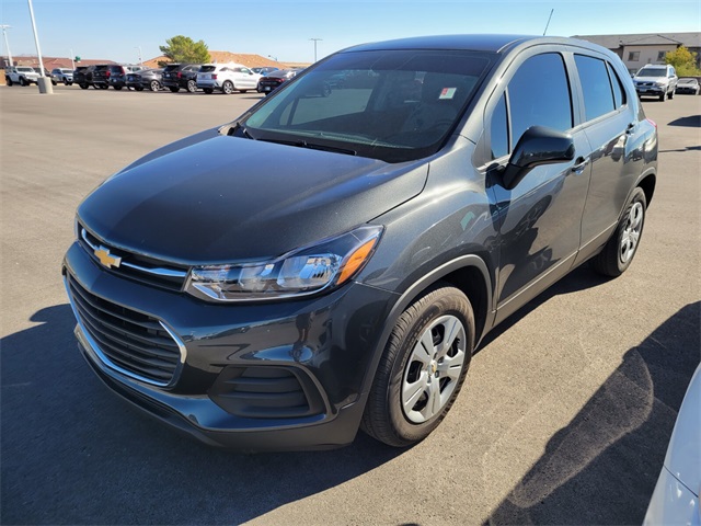 Recent Arrival!CARFAX One-Owner.Odometer is 28147 miles below market average!26/31 City/Highway MPGNightfall Gray Metallic 2019 Chevrolet Trax LS FWD 6-Speed Automatic ECOTEC 1.4L I4 SMPI DOHC Turbocharged VVTIf you don't drive here, you can't save here!Price may not include recon fee. Preferred Equipment Group 1LS, 16" Aluminum Wheels, 2 USB Ports w/Auxiliary Input Jack, 2-Way Manual Front Passenger Seat Adjuster, 3.53 Final Drive Axle Ratio, 4-Way Manual Driver Seat Adjuster, 6 Speakers, 6-Speaker Audio System Feature, ABS brakes, Air Conditioning, Alloy wheels, AM/FM radio, Apple CarPlay/Android Auto, Brake assist, Bumpers: body-color, Cloth Seat Trim, Compass, Delay-off headlights, Driver door bin, Driver vanity mirror, Driver's Seat Mounted Armrest, Dual front impact airbags, Dual front side impact airbags, Electronic Stability Control, Emergency communication system: OnStar and Chevrolet connected services capable, Exterior Parking Camera Rear, Front anti-roll bar, Front Bucket Seats, Front Bucket Seats w/Driver Power Lumbar, Front License Plate Bracket, Front reading lights, Front wheel independent suspension, Fully automatic headlights, Illuminated entry, Knee airbag, Low tire pressure warning, Occupant sensing airbag, Outside temperature display, Overhead airbag, Panic alarm, Passenger door bin, Passenger vanity mirror, Power door mirrors, Power steering, Power windows, Premium audio system: Chevrolet MyLink, Radio data system, Radio: Chevrolet Infotainment 3 System, Rear seat center armrest, Rear side impact airbag, Rear window defroster, Rear window wiper, Remote keyless entry, Security system, Speed-sensing steering, Split folding rear seat, Spoiler, Steering wheel mounted audio controls, Tachometer, Telescoping steering wheel, Tilt steering wheel, Traction control, Trip computer, Variably intermittent wipers, and Wheels: 16" Steel (DISC)