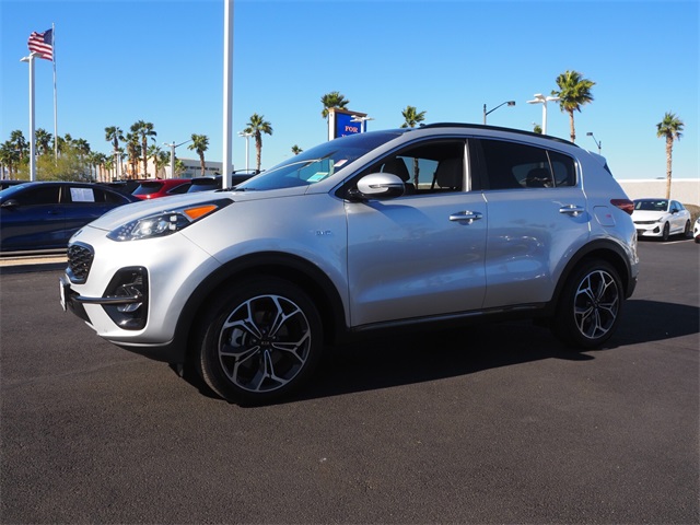 CARFAX One-Owner.Odometer is 13364 miles below market average!Sparkling Silver 2020 Kia Sportage SX AWD 6-Speed Automatic Electronic with Overdrive 2.0L I4 DGI Turbocharged AWD.If you don't drive here, you can't save here!Price may not include recon fee. Kia Certified Pre-Owned Certified, AWD, 19" Alloy Wheels, 4-Wheel Disc Brakes, 8 Speakers, ABS brakes, Air Conditioning, Alloy wheels, AM/FM radio: SiriusXM, Apple CarPlay & Android Auto, Auto High-beam Headlights, Auto-dimming Rear-View mirror, Automatic temperature control, Axle Ratio: TBD, Brake assist, Bumpers: body-color, Cargo Cover, Carpet Floor Mats, Compass, Delay-off headlights, Driver door bin, Driver vanity mirror, Dual front impact airbags, Dual front side impact airbags, Electronic Stability Control, Emergency communication system: UVO link, Exterior Parking Camera Rear, Four wheel independent suspension, Front anti-roll bar, Front Bucket Seats, Front Center Armrest, Front dual zone A/C, Front fog lights, Front reading lights, Fully automatic headlights, Garage door transmitter: HomeLink, Heated & Ventilated Front Bucket Seats, Heated door mirrors, Heated front seats, Heated steering wheel, Illuminated entry, Leather Seat Trim, Leather Shift Knob, Low tire pressure warning, Navigation System, Occupant sensing airbag, Outside temperature display, Overhead airbag, Overhead console, Panic alarm, Passenger door bin, Passenger vanity mirror, Power door mirrors, Power driver seat, Power Liftgate, Power moonroof, Power passenger seat, Power steering, Power windows, Radio: AM/FM/MP3 Premium Audio System, Rear anti-roll bar, Rear seat center armrest, Rear window defroster, Rear window wiper, Remote keyless entry, Roof rack: rails only, Security system, Speed control, Speed-sensing steering, Split folding rear seat, Spoiler, Sport steering wheel, Steering wheel mounted audio controls, Tachometer, Telescoping steering wheel, Tilt steering wheel, Traction control, Trip computer, Turn signal indicator mirrors, Variably intermittent wipers, and Ventilated front seats.