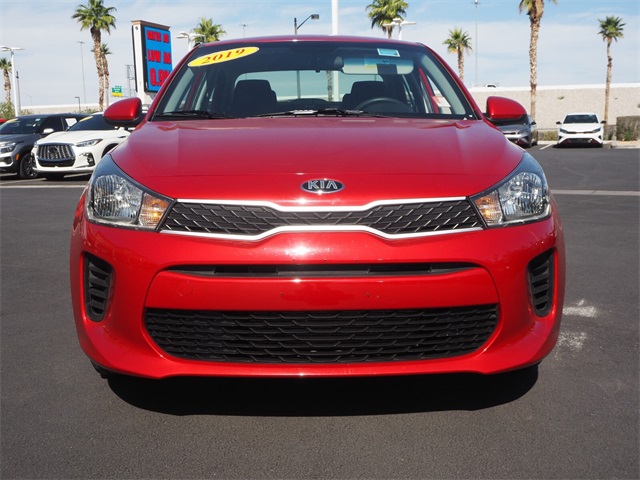 Recent Arrival!Odometer is 22614 miles below market average!28/37 City/Highway MPGCurrant Red 2019 Kia Rio S FWD 6-Speed Automatic 1.6L I4 DGI 16V Black Cloth.If you don't drive here, you can't save here!Price may not include recon fee. Black Cloth, 6 Speakers, ABS brakes, Air Conditioning, AM/FM radio, Apple CarPlay & Android Auto, Bluetooth® Wireless Technology, Brake assist, Bumpers: body-color, Driver door bin, Driver vanity mirror, Dual front impact airbags, Dual front side impact airbags, Electronic Stability Control, Emergency communication system: UVO eServices 911 Connect, Exterior Parking Camera Rear, Front anti-roll bar, Front Bucket Seats, Front Center Armrest, Front reading lights, Front wheel independent suspension, Fully automatic headlights, Heated door mirrors, Illuminated entry, Low tire pressure warning, Occupant sensing airbag, Outside temperature display, Overhead airbag, Overhead console, Panic alarm, Passenger door bin, Passenger vanity mirror, Power door mirrors, Power steering, Power windows, Radio: UVO Play AM/FM/MP3 Audio System, Rear window defroster, Remote keyless entry, Speed control, Speed-sensing steering, Split folding rear seat, Steering wheel mounted audio controls, Tachometer, Telescoping steering wheel, Tilt steering wheel, Traction control, Trip computer, Variably intermittent wipers, Wheels: 15" x 5.5J Steel w/Full Covers, and Woven Cloth Seat Trim.
