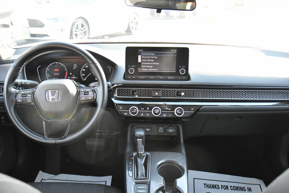 NACTOY 2022 North American Car of the Year. Delivers 42 Highway MPG and 33 City MPG! This Honda Civic Sedan boasts a Intercooled Turbo Premium Unleaded I-4 1.5 L/91 engine powering this Variable transmission. Wheels: 17 Alloy w/Gloss Black Inserts, Variable Intermittent Wipers, Trunk Rear Cargo Access.*This Honda Civic Sedan Comes Equipped with These Options *Trip Computer, Transmission: Continuously Variable (LL-CVT), Transmission w/Driver Selectable Mode, Traffic Jam Assist, Tires: 215/50R17 91H AS, Strut Front Suspension w/Coil Springs, Steel Spare Wheel, Side Impact Beams, Seats w/Cloth Back Material, Rocker Panel Extensions.