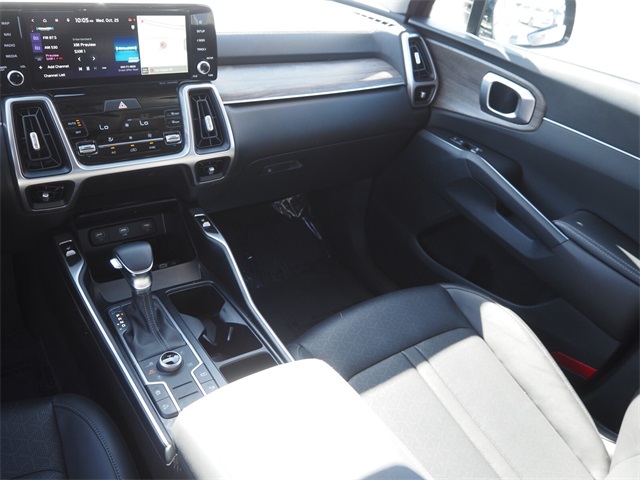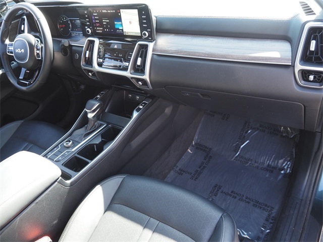 CARFAX One-Owner.Odometer is 5929 miles below market average!Aruba Green 2022 Kia Sorento S AWD 8-Speed Automatic 2.5L I4 DGI DOHC 16V LEV3-ULEV70 191hp AWD.If you don't drive here, you can't save here!Price may not include recon fee. Panoramic Sunroof Package (LED Interior Lighting and Power Sunroof w/Power Sunshade), AWD, 3rd row seats: split-bench, 4.081 Axle Ratio, 4-Wheel Disc Brakes, 6 Speakers, ABS brakes, Air Conditioning, Alloy wheels, AM/FM radio: SiriusXM, Apple CarPlay & Android Auto, Auto High-beam Headlights, Automatic temperature control, Brake assist, Bumpers: body-color, Carpeted Floor Mats, Delay-off headlights, Driver door bin, Driver vanity mirror, Dual front impact airbags, Dual front side impact airbags, Electronic Stability Control, Emergency communication system: UVO Link, Exterior Parking Camera Rear, Four wheel independent suspension, Front anti-roll bar, Front Bucket Seats, Front Center Armrest, Front dual zone A/C, Front reading lights, Fully automatic headlights, Heated door mirrors, Heated Front Bucket Seats, Heated front seats, Illuminated entry, Knee airbag, Leather Shift Knob, Leather steering wheel, Low tire pressure warning, Navigation System, Occupant sensing airbag, Outside temperature display, Overhead airbag, Overhead console, Panic alarm, Passenger door bin, Passenger vanity mirror, Power door mirrors, Power driver seat, Power steering, Power windows, Radio data system, Radio: AM/FM Audio System, Rear air conditioning, Rear anti-roll bar, Rear reading lights, Rear seat center armrest, Rear window defroster, Rear window wiper, Remote keyless entry, Roof rack: rails only, Security system, Speed control, Speed-sensing steering, Split folding rear seat, Spoiler, Steering wheel mounted audio controls, SynTex Artificial Leather Seat Trim, Tachometer, Telescoping steering wheel, Tilt steering wheel, Traction control, Trip computer, Turn signal indicator mirrors, Variably intermittent wipers, and Wheels: 7.5J x 18" Gloss Black Alloy.