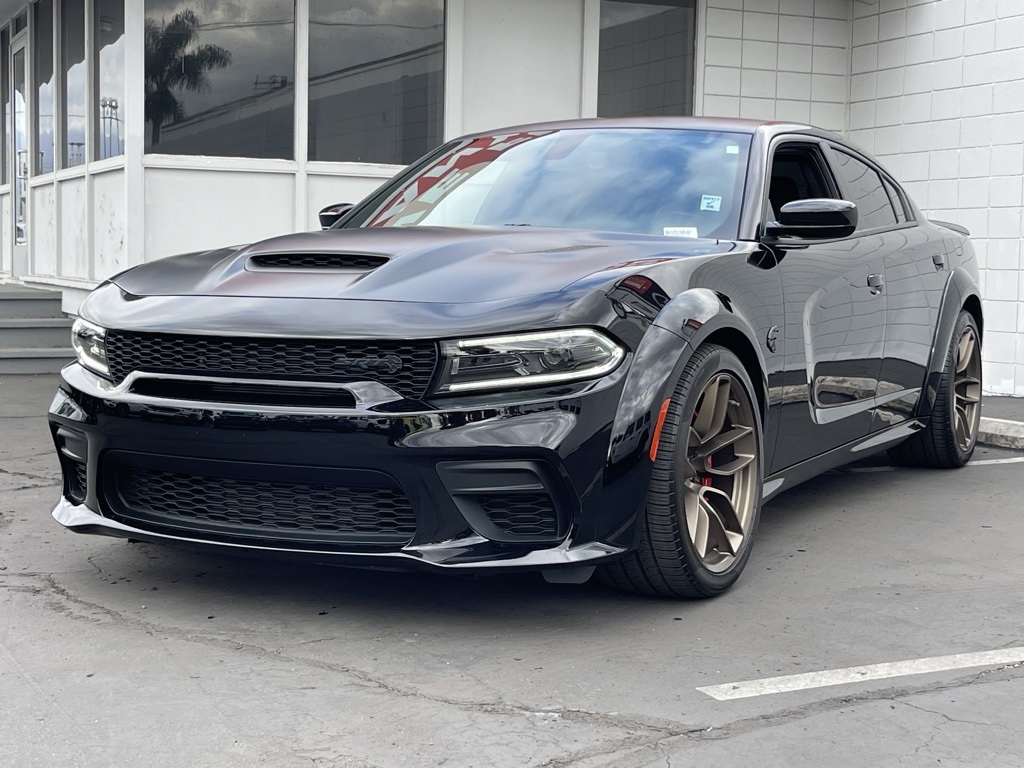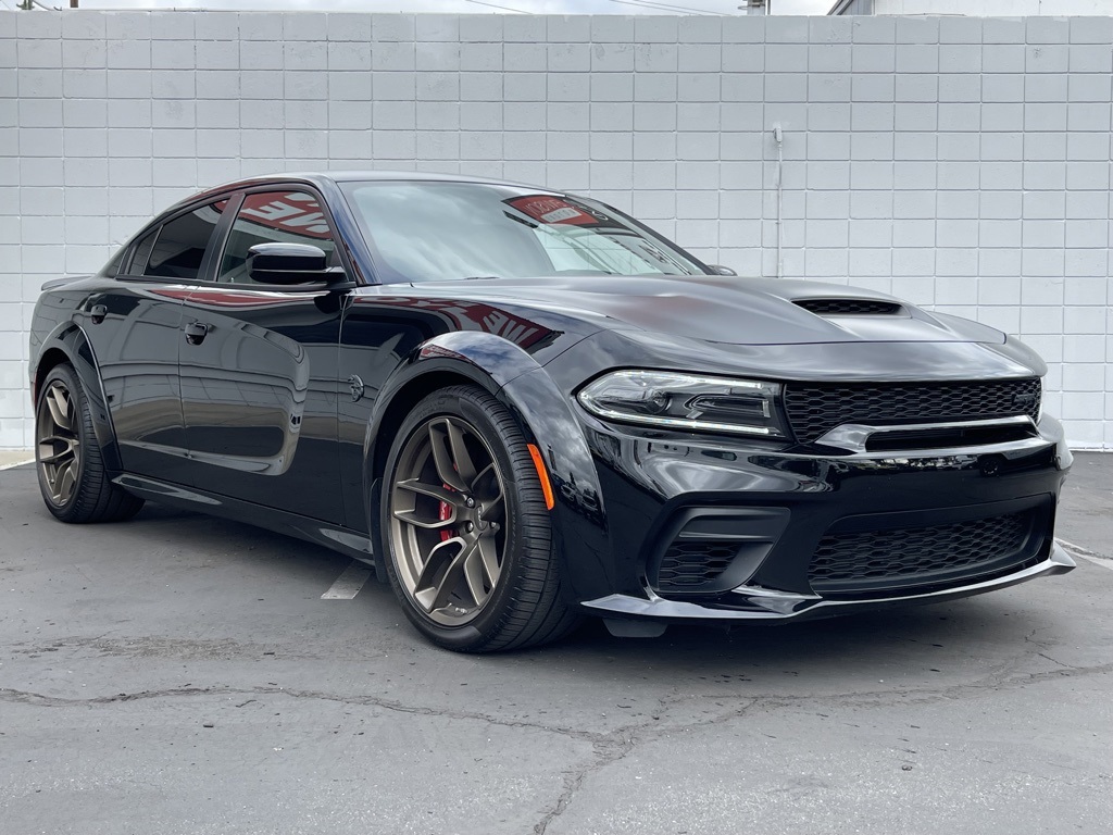 CARFAX One-Owner. Clean CARFAX.Odometer is 3591 miles below market average! ULTRA CLEAN, SUPER LOW MILES!, Black Leather, Black Charger Exhaust Tips, Brass Monkey SRT Exterior Badges, Quick Order Package 23T SRT Hellcat, Satin Black Charger Decklid Badge, Satin Black Dodge Tail Lamp Badge, Satin Black Hood/Roof/Trunk/Spoiler, SRT Black Package, Wheels: 20" x 11" Brass Monkey.Pitch Black Clearcoat2022 Dodge Charger SRT Hellcat Widebody RWD 8-Speed Automatic 6.2L Supercharged HEMI V8 SRT**********All Pricing and Advertised Prices for any/all vehicles offered for sale does not include dealer installed accessories which can be purchased for an additional cost.********** The Factory Rebates may not be available on this vehicle if you elect to take advantage of a Special Alternative APR or Special Lease program. Some Factory Rebates are California Resident specific and may vary for residents of other states. NO sales to Dealers, Brokers or Exporters. For out of state purchase, customers must be present to purchase. If shipping is required, dealership must facilitate; no exceptions. Please contact us for special Multi-Vehicle or Fleet pricing. Prices are plus government fees and taxes, any finance charges, $85 documentary fee, $29 electronic registration fee, any emission testing charge and $1.75 per new tire state tire fee. *** We make every effort to provide accurate information, but please verify before purchasing. Leasing & financing available on approved credit. Trade-ins accepted. Subject to prior sale.