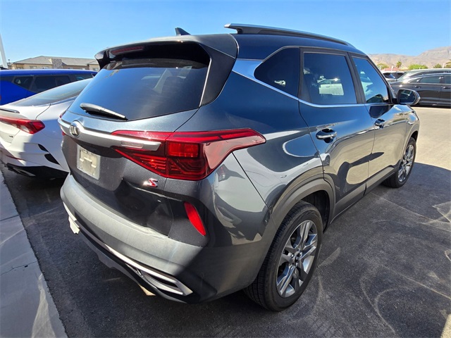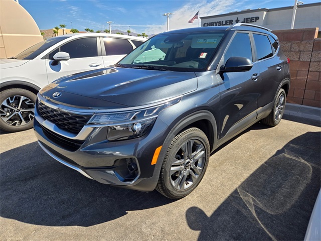 Recent Arrival!29/34 City/Highway MPGGravity Gray 2021 Kia Seltos S FWD CVT 2.0L I4 MPIIf you don't drive here, you can't save here!Price may not include recon fee. 4-Wheel Disc Brakes, 6 Speakers, 6.052 Axle Ratio, ABS brakes, Air Conditioning, Alloy wheels, AM/FM radio, Apple CarPlay & Android Auto, Brake assist, Bumpers: body-color, Cargo Mat, Cargo Net (Floor), Carpeted Floor Mats, Delay-off headlights, Driver door bin, Driver vanity mirror, Dual front impact airbags, Dual front side impact airbags, Electronic Stability Control, Exterior Parking Camera Rear, Front anti-roll bar, Front Bucket Seats, Front Center Armrest, Front fog lights, Front reading lights, Front wheel independent suspension, Fully automatic headlights, Heated door mirrors, Illuminated entry, Leather Shift Knob, Low tire pressure warning, Occupant sensing airbag, Outside temperature display, Overhead airbag, Overhead console, Panic alarm, Passenger door bin, Passenger vanity mirror, Power door mirrors, Power steering, Power windows, Radio: AM/FM/MP3 Display Audio, Rear seat center armrest, Rear window defroster, Rear window wiper, Remote keyless entry, Roof rack: rails only, Security system, Sofino Premium Leatherette Seat Trim, Speed control, Speed-sensing steering, Split folding rear seat, Spoiler, Steering wheel mounted audio controls, Tachometer, Telescoping steering wheel, Tilt steering wheel, Traction control, Trip computer, Turn signal indicator mirrors, Variably intermittent wipers, and Wheels: 17" Alloy w/Dark Gray Finish.