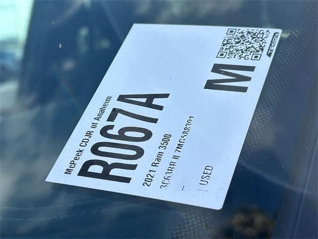 Clean CARFAX. CARFAX One-Owner. SUNROOF, INTERIOR & EXTERIOR PROFESSIONALLY DETAILED FOR DELIVERY, MCPEEK CHRYSLER DODGE JEEP RAM FAMILY OWNED AND OPERATED SINCE 1961 !!!!!, 2nd Row In Floor Storage Bins, Auto High Beam Headlamp Control, Black Exterior Mirrors, Black Exterior Truck Badging, Black Headlamp Bezels, Black Interior Accents, Black Ram Head Tailgate Badge, Black Tail Lamp Bezels, Blind Spot & Cross Path Detection (DISC), Body Color Door Handles, Body Color Grille Surround, Exterior Mirrors w/Memory, Foam Bottle Insert (Door Trim Panel), Gloss Black Grille Billets/Accents, Laramie Level 1 Equipment Group (DISC), Mirror-Mounted Aux Reverse Lamps, Night Edition, Painted Front Bumper, Painted Rear Bumper, Power Adjustable Convex Aux Mirrors, Power Adjustable Pedals w/Memory, Power Black Tow Mirrors w/Convex Spotter & Memory, Power Chrome Tow Mirrors w/Convex Spotter & Memory, Quick Order Package 2HH Laramie, Radio/Driver Seat/Mirrors/Pedals Memory, Rain Sensitive Windshield Wipers, Remote Tailgate Release, Ventilated Front Seats.Bright White Clearcoat 2021 Ram 3500 Laramie 4WD 6-Speed AutomaticAwards: * JD Power Initial Quality Study (IQS)Receive Free lube and oil filter changes for up to 45,000 miles for 3 years!!! McPeek's Dodge of Anahiem 1221 S. Auto Center Drive Anahiem, CA 92806 714-262-4902.