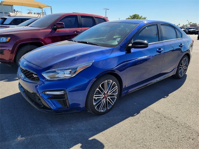 Recent Arrival!CARFAX One-Owner.Odometer is 10216 miles below market average!Deep Sea Blue 2021 Kia Forte GT FWD 1.6L 4-CylinderIf you don't drive here, you can't save here!Awards: * JD Power Initial Quality Study (IQS)Price may not include recon fee. 4-Wheel Disc Brakes, ABS brakes, Air Conditioning, Alloy wheels, AM/FM radio: SiriusXM, Apple CarPlay & Android Auto, Auto High-beam Headlights, Brake assist, Bumpers: body-color, Cloth & Leatherette Seat Trim, Delay-off headlights, Driver door bin, Driver vanity mirror, Dual front impact airbags, Dual front side impact airbags, Electronic Stability Control, Emergency communication system: UVO eServices, Exterior Parking Camera Rear, Front anti-roll bar, Front Bucket Seats, Front Center Armrest, Front fog lights, Front reading lights, Front Sport Seats, Front wheel independent suspension, Fully automatic headlights, Heated door mirrors, Illuminated entry, Lane Departure Warning System, Leather steering wheel, Low tire pressure warning, Occupant sensing airbag, Outside temperature display, Overhead airbag, Overhead console, Panic alarm, Passenger door bin, Passenger vanity mirror, Power door mirrors, Power steering, Power windows, Radio data system, Rear anti-roll bar, Rear seat center armrest, Rear window defroster, Remote keyless entry, Security system, Speed control, Split folding rear seat, Spoiler, Sport steering wheel, Steering wheel mounted audio controls, Tachometer, Telescoping steering wheel, Tilt steering wheel, Traction control, Trip computer, Turn signal indicator mirrors, Variably intermittent wipers, and Wheels: 18" Machine Finish Alloy.