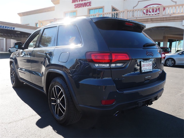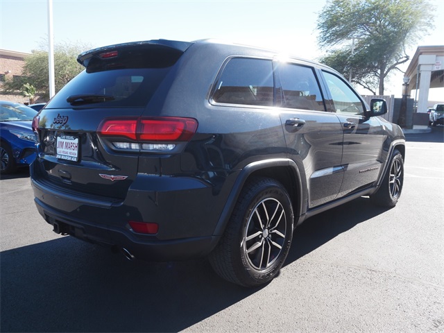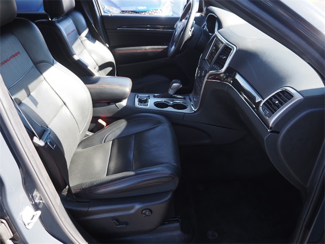 CARFAX One-Owner.Rhino Clearcoat 2018 Jeep Grand Cherokee Trailhawk 4WD 8-Speed Automatic 3.6L V6 24V VVT 4WD.If you don't drive here, you can't save here!Awards: * 2018 KBB.com 10 Most Awarded BrandsPrice may not include recon fee. Jeep Advanced Active Safety Group (Adaptive Cruise Control w/Stop, Advanced Brake Assist, Full Speed FWD Collision Warn Plus, Lane Departure Warning Plus, Parallel & Perp Park Assist w/Stop, and Rain Sensitive Windshield Wipers), Quick Order Package 2BJ, Trailhawk Luxury Group (Auto High Beam Headlamp Control, Automatic Headlamp Leveling System, Bi-Xenon High-Intensity Discharge Headlamps, Cargo Compartment Cover, Dual-Pane Panoramic Sunroof, Front LED Fog Lamps, LED Daytime Running Headlamps, Power Tilt/Telescope Steering Column, and Trailhawk Leather Trim Seats w/Perforation), 4WD, 10 Speakers, 230MM Rear Axle, 3.45 Rear Axle Ratio, 4-Wheel Disc Brakes, ABS brakes, Air Conditioning, Alloy wheels, AM/FM radio: SiriusXM, Anti-whiplash front head restraints, Apple CarPlay/Android Auto, Audio memory, Auto-dimming door mirrors, Auto-Dimming Exterior Passenger Mirror, Auto-dimming Rear-View mirror, Auto-leveling suspension, Automatic temperature control, Blind Spot & Cross Path Detection, Brake assist, Bumpers: body-color, Compass, Delay-off headlights, Driver door bin, Driver vanity mirror, Dual Bright Exhaust Tips, Dual front impact airbags, Dual front side impact airbags, Electronic Stability Control, Emergency communication system: SiriusXM Guardian, Engine Oil Cooler, Four wheel independent suspension, Front anti-roll bar, Front Bucket Seats, Front Center Armrest w/Storage, Front dual zone A/C, Front fog lights, Front License Plate Bracket, Front reading lights, Fully automatic headlights, Garage door transmitter, Heated door mirrors, Heated front seats, Heated rear seats, Heated steering wheel, Heavy-Duty Engine Cooling, Illuminated entry, Knee airbag, Leather Shift Knob, Low tire pressure warning, Manufacturer's Statement of Origin, Memory seat, Navigation System, Normal Duty Suspension - Increased Travel, Occupant sensing airbag, Outside temperature display, Overhead airbag, Overhead console, Panic alarm, ParkView Rear Back-Up Camera, Passenger door bin, Passenger vanity mirror, Power door mirrors, Power driver seat, Power Liftgate, Power passenger seat, Power steering, Power windows, Quadra-Trac II 4WD System, Radio data system, Radio: Uconnect 4C Nav w/8.4" Display, Rear anti-roll bar, Rear reading lights, Rear seat center armrest, Rear window defroster, Rear window wiper, Remote keyless entry, Roof rack: rails only, Security system, Speed control, Speed-Sensitive Wipers, Split folding rear seat, Spoiler, Steering wheel mounted audio controls, Tachometer, Telescoping steering wheel, Tilt steering wheel, Traction control, Trailhawk Leather/Suede Seats, Trip computer, Turn signal indicator mirrors, Variably intermittent wipers, Ventilated front seats, and Wheels: 18" x 8.0" Off Road Aluminum.
