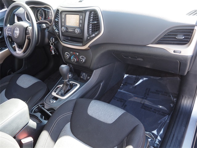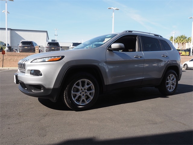 Recent Arrival!CARFAX One-Owner.Priced below KBB Fair Purchase Price!Odometer is 40734 miles below market average!20/27 City/Highway MPGBillet Silver Metallic Clearcoat 2018 Jeep Cherokee Latitude 4WD 9-Speed 948TE Automatic 3.2L V6If you don't drive here, you can't save here!Awards: * 2018 KBB.com 10 Most Awarded BrandsPrice may not include recon fee. Quick Order Package 26J, 17" x 7" Aluminum Wheels, 3.734 Axle Ratio, 4-Wheel Disc Brakes, 6 Speakers, 600 Amp Maintenance Free Battery, ABS brakes, Active Grille Shutters, Alloy wheels, AM/FM radio, Anti-whiplash front head restraints, Brake assist, Bumpers: body-color, Cloth Low-Back Bucket Seats, Compass, Delay-off headlights, Driver door bin, Driver vanity mirror, Dual front impact airbags, Dual front side impact airbags, Electronic Stability Control, Engine Oil Cooler, Four wheel independent suspension, Front anti-roll bar, Front Bucket Seats, Front Center Armrest, Front fog lights, Front License Plate Bracket, Front reading lights, Fully automatic headlights, High intensity discharge headlights: Bi-Xenon, Illuminated entry, Knee airbag, Low tire pressure warning, Manufacturer's Statement of Origin, Normal Duty Suspension, Occupant sensing airbag, Outside temperature display, Overhead airbag, Overhead console, Panic alarm, ParkView Rear Back-Up Camera, Passenger door bin, Passenger vanity mirror, Power door mirrors, Power steering, Power windows, Radio data system, Radio: Uconnect 3 w/5" Display, Rear anti-roll bar, Rear reading lights, Rear seat center armrest, Rear side impact airbag, Rear window defroster, Rear window wiper, Remote keyless entry, Roof rack: rails only, SiriusXM Satellite Radio, Speed control, Speed-sensing steering, Split folding rear seat, Spoiler, Tachometer, Telescoping steering wheel, Tilt steering wheel, Traction control, Trip computer, Variably intermittent wipers, and Voltmeter.
