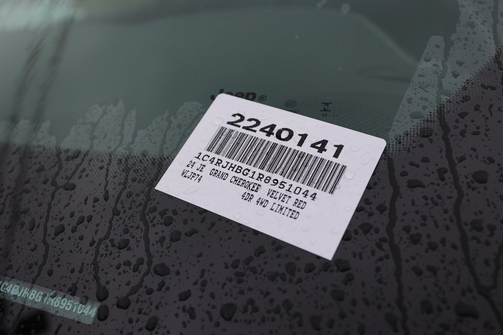 Velvet Red Pearlcoat 2024 Jeep Grand Cherokee Limited 4WD 8-Speed Automatic 3.6L V6 24V VVT 4WD.19/26 City/Highway MPG Price includes: $2500 - 2024 JEEP Retail Bonus Cash 24CRA1. Exp. 01/02/2024