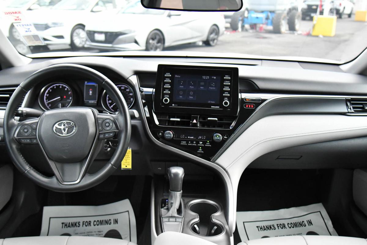 Delivers 39 Highway MPG and 28 City MPG! This Toyota Camry delivers a Regular Unleaded I-4 2.5 L/152 engine powering this Automatic transmission. Variable Intermittent Wipers, Urethane Gear Shifter Material, Trunk Rear Cargo Access.*This Toyota Camry Features the Following Options *Trip Computer, Transmission: 8-Speed Direct Shift ECT-i Automatic -inc: sequential shift mode and paddle shifters, Toyota Safety Sense (TSS) 2.5+, Tires: 235/45R18 AS, Tire Pressure Monitor System (TPMS) Tire Specific Low Tire Pressure Warning, Strut Front Suspension w/Coil Springs, Steel Spare Wheel, Single Stainless Steel Exhaust w/Polished Tailpipe Finisher, Side Impact Beams, Seats w/Leatherette Back Material.