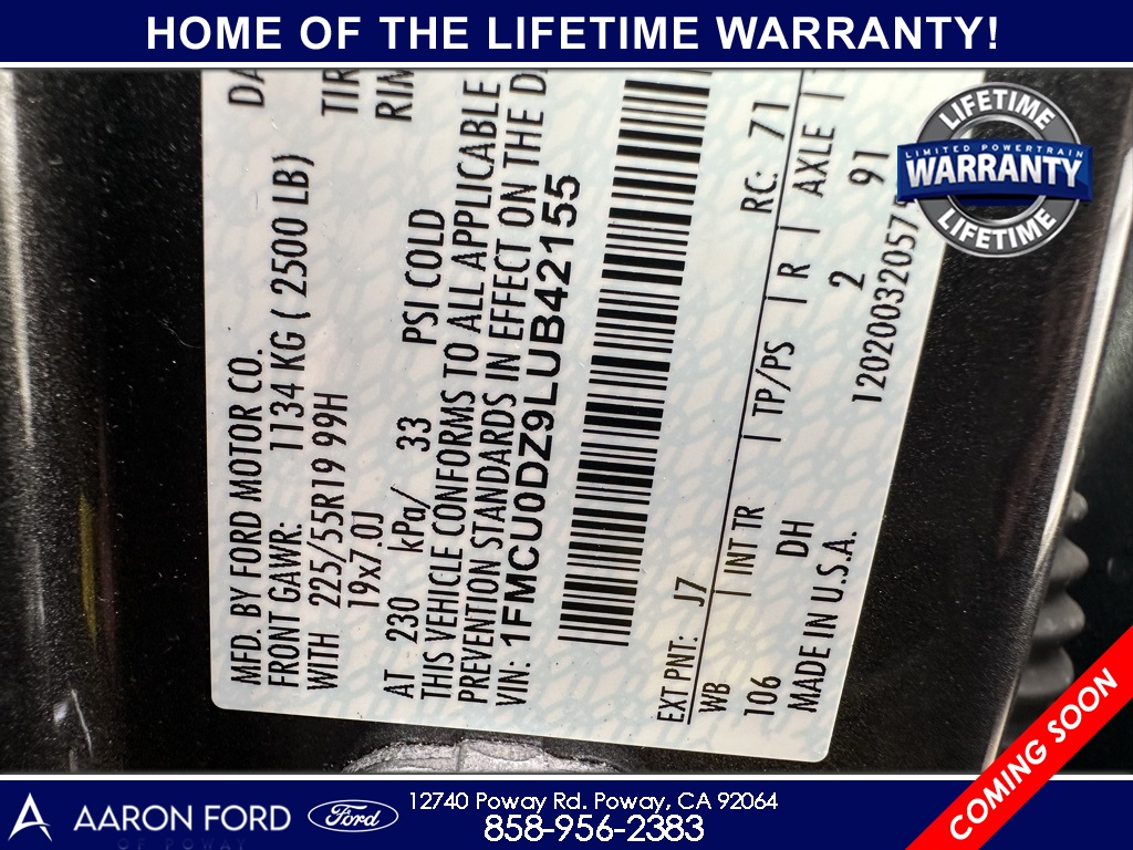 110V/150W AC Power Outlet, Air Conditioning, AppLink/Apple CarPlay and Android Auto, Black Roof-Rack Side Rails, Equipment Group 400A, Exterior Parking Camera Rear, FordPass Connect, Fully automatic headlights, Head-Up Display, Heated front seats, Heated Leather-Trimmed Front Sport Contour Seats, Navigation System, Panoramic Vista Roof, Pedestrian Alert Sounder, Power Liftgate, Radio: B&O Sound System by Bang & Olufsen, SYNC 3 Communications & Entertainment System, Titanium Premium Package 2.0, Voice-Activated Touchscreen Navigation System, Wheels: 19" Machined-Face Aluminum, Wireless Charging Pad.44/37 City/Highway MPGCARFAX One-Owner.Clean CARFAX.To see more quality vehicles like this one right just click on AaronFordofPoway.com or dial (858) 748-1400.Awards: * JD Power Automotive Performance, Execution and Layout (APEAL) Study