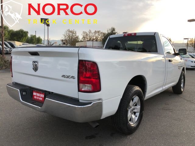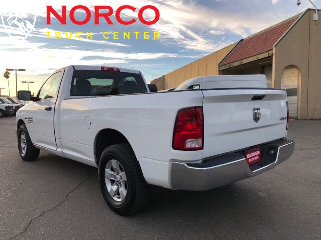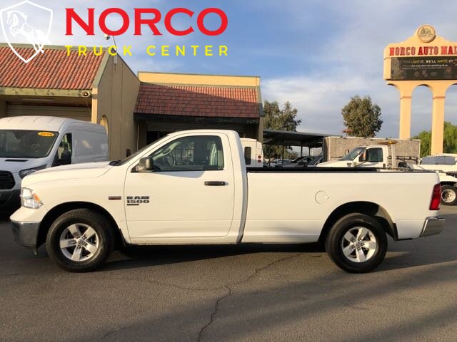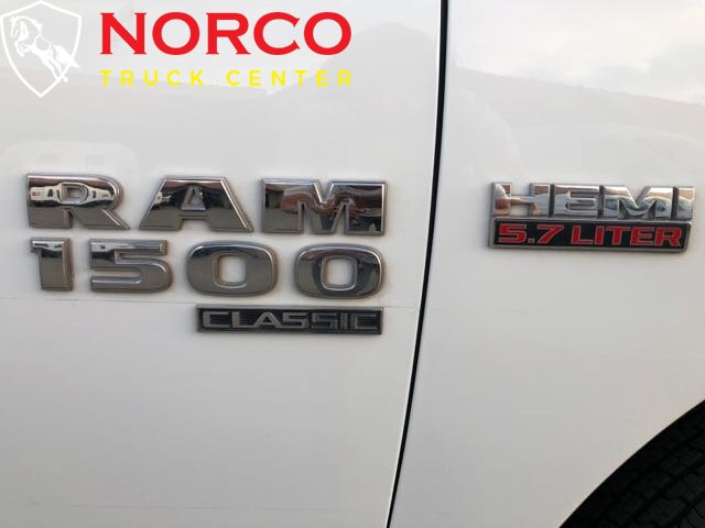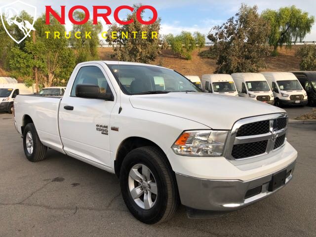 The 2019 Ram 1500 Classic Tradesman Regular Cab Long Bed is an impressive full-size pickup truck that's designed to handle tough jobs with ease. It comes with a HEMI 5.7L V8 engine that delivers 395 horsepower and 410 ft-lbs of torque, providing plenty of power for hauling heavy loads. As for factory default features, the Ram 1500 Classic Tradesman Regular Cab Long Bed comes equipped with a range of useful tools and amenities. The interior is spacious and comfortable, with a durable vinyl bench seat that can accommodate up to three passengers. The air conditioning system keeps everyone cool and comfortable, while the six-speaker audio system provides high-quality sound for music and podcasts. Other notable features include a rearview camera that makes parking and reversing easier, as well as a 5-inch touchscreen display that can be used to control the infotainment system. The truck also comes with a Class III hitch receiver, a seven-pin wiring harness, and a spray-in bedliner to protect the cargo area. Overall, the 2019 Ram 1500 Classic Tradesman Regular Cab Long Bed is an excellent choice for anyone in need of a powerful and reliable pickup truck. With its impressive performance, spacious interior, and range of useful features, it's sure to exceed your expectations. -- INSTALLED FEATURES: Front air conditioning, Front air conditioning zones: single, Airbag deactivation: passenger switch, Front airbags: dual, Side airbags: front, Side curtain airbags: front, Antenna type: mast, Auxiliary audio input: USB / jack, Radio: AM/FM, Speed sensitive volume control, Total speakers: 6, ABS: 4-wheel, Brake drying, Braking assist, Electronic brakeforce distribution, Front brake diameter: 13.2, Front brake type: ventilated disc, Front brake width: 1.1, Power brakes, Rear brake diameter: 13.8, Rear brake type: ventilated disc, Rear brake width: 0.87, Armrests: front center, Dash trim: simulated alloy, Floor material: rubber/vinyl, Steering wheel trim: urethane, Assist handle: front, Cruise control, Cupholders: front, Power outlet(s): 12V front, Power steering, Rearview mirror: manual day/night, Steering wheel: tilt, Steering wheel mounted controls: cruise control / multi-function, Storage: door pockets / organizer, Sun visors, Axle ratio: 3.21, Alternator: 160 amps, Auxiliary oil cooler, Battery: maintenance-free, Battery rating: 730 CCA, Battery saver, Emissions: 50 state, Active grille shutters, Door handle color: black, Front bumper color: black, Grille color: black / black surround, License plate bracket: front, Mirror color: black, Pickup bed light, Pickup bed liner: spray-on, Rear bumper color: black, Tailgate: removable, Window trim: black, Infotainment screen size: 3 in., Clock, Digital odometer, External temperature display, Fuel economy display: MPG / range, Gauge: tachometer, Instrument cluster screen size: 3.5 in., Multi-function display, Powertrain hour meter, Warnings and reminders: low fuel level / low oil level / maintenance due, Headlights: auto delay off / auto on/off / halogen / quad headlights, Side mirror adjustments: manual / manual folding, Camera system: rearview, Child seat anchors: LATCH system, Crumple zones: front, Rearview monitor: in mirror, Emergency locking retractors: front, Front seatbelts: 3-point, Seatbelt force limiters: front, Seatbelt pretensioners: front, Seatbelt warning sensor: front, Driver seat manual adjustments: reclining / 4, Front headrests: adjustable / 2, Front seat type: 40-20-40 split bench, Passenger seat manual adjustments: reclining / 4, Upholstery: vinyl, Anti-theft system: vehicle immobilizer, Hill holder control, Roll stability control, Stability control, Traction control, Trailer stability control, Steering ratio: 17.9, Turns lock-to-lock: 3.3, Front shock type: twin-tube gas, Front spring type: coil, Front stabilizer bar, Front struts, Front suspension classification: independent, Front suspension type: short and long arm, Rear shock type: twin-tube gas, Rear spring type: coil, Rear suspension classification: solid live axle, Rear suspension type: multi-link, Spare tire mount location: underbody, Spare tire size: full-size, Spare wheel type: steel, Tire Pressure Monitoring System, Tire type: all season, Wheels: steel, Auxiliary transmission fluid cooler, Trailer hitch: Class IV, Trailer wiring: 4-pin / 7-pin, Front wipers: variable intermittent, Rear privacy glass, Solar-tinted glass