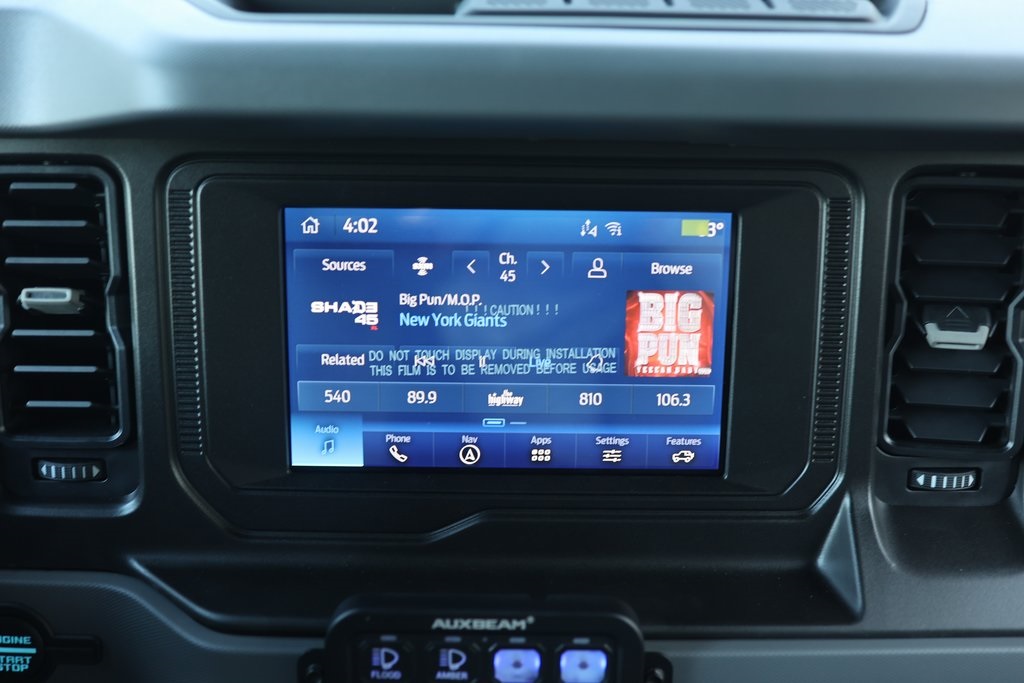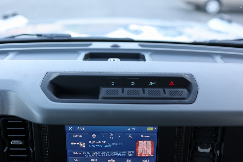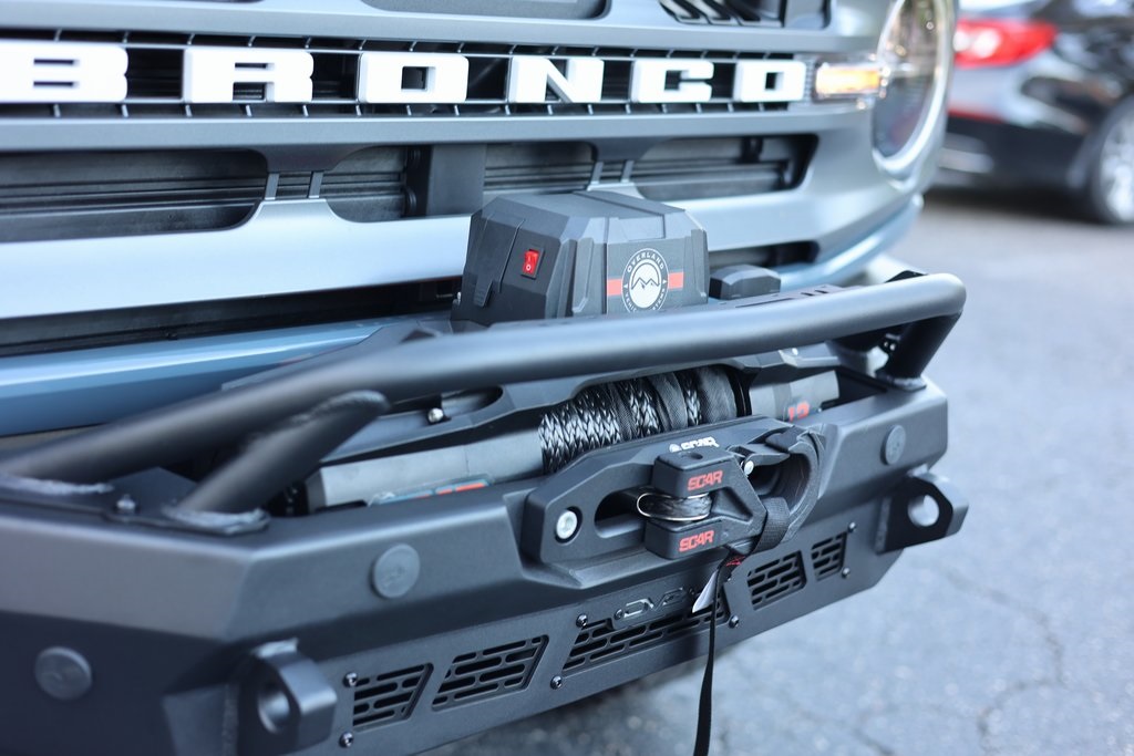 FACTORY FORD FOX RACINGSASQUATCH SUSPENSIONSASQUATCH WHEEL/ TIRE PACKAGE17X8.5 / 315/70R17DV8 OFF-ROAD 21-C BRONCO SPEC SERIESOVERLAND VEHICLE SYSTEMS SCAR 12S - 12,000 Lbs. RatedSynthetic Rope WinchRIGID D-SERIES PRO SPOT AMBERRIGID D-SRS PRO FLOODAUX BEAM SWITCH SYSTEMABS brakes, Alloy wheels, Compass, Electronic Stability Control, Heated door mirrors, Illuminated entry, Low tire pressure warning, Remote keyless entry, Traction control.2023FordBroncoBig BendAzure Gray Metallic Tri-Coat2.7L 6-Cylinder PDI Turbocharged DOHC4WD10-Speed AutomaticTo see more quality vehicles like this one right just click on AaronFordofPoway.com or dial (858) 748-1400.