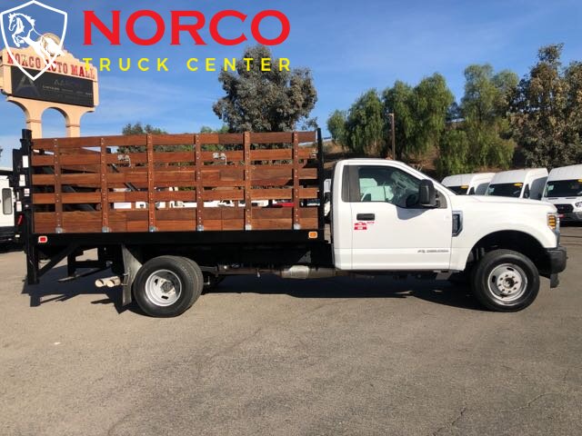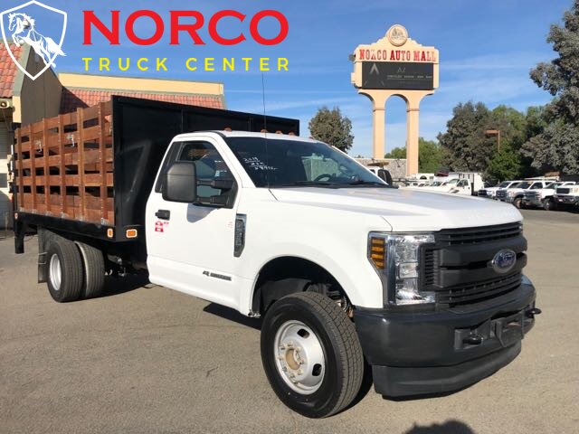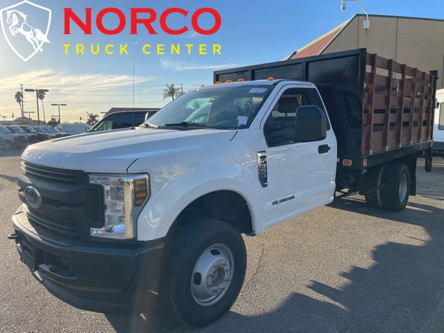 Introducing the 2019 Ford F-350 Super Duty XL Diesel Regular Cab 12' Stake Bed w/ Lift Gate, a heavy-duty truck designed for your business needs. This truck is powered by a Power Stroke 6.7L Biodiesel Turbo V8 engine that delivers 330 horsepower and 750ft. of torque. The factory default features of this truck are designed to meet the demands of your business. The exterior of the truck is equipped with a 12' stake bed that provides ample space for your cargo. The bed is also designed with a lift gate, which makes loading and unloading your cargo a breeze. Inside the cabin, you will find comfortable vinyl seating and a user-friendly dashboard. The truck also features air conditioning, a 4-speaker audio system, and a 4.2-inch display screen for your convenience. Safety features on this truck include front and side airbags, anti-lock brakes, and a rearview camera. The truck also has a trailer brake controller, making towing a breeze. Overall, the 2019 Ford F-350 Super Duty XL Diesel Regular Cab 12' Stake Bed w/ Lift Gate is a reliable and powerful truck that is perfect for your business needs. -- INSTALLED FEATURES: Airbag deactivation: passenger switch, Front airbags: dual, Side airbags: front, Side curtain airbags: front, Front brake diameter: 14.29, Rear brake diameter: 14.3, Axle ratio: 3.73, Tire type: all season
