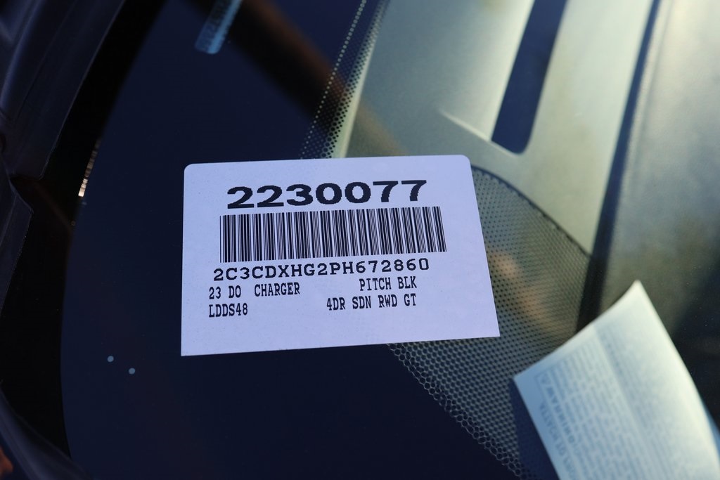 Pitch Black Clearcoat 2023 Dodge Charger GT RWD 8-Speed Automatic 3.6L V6 24V VVT Black Cloth.19/30 City/Highway MPG Price includes: $3000 - 2023 DJ California BC Bonus Cash CACPA. Exp. 04/01/2024 $3000 - 2023 Dodge National Power Dollars Retail Bonus Cash 38CP9. Exp. 04/01/2024