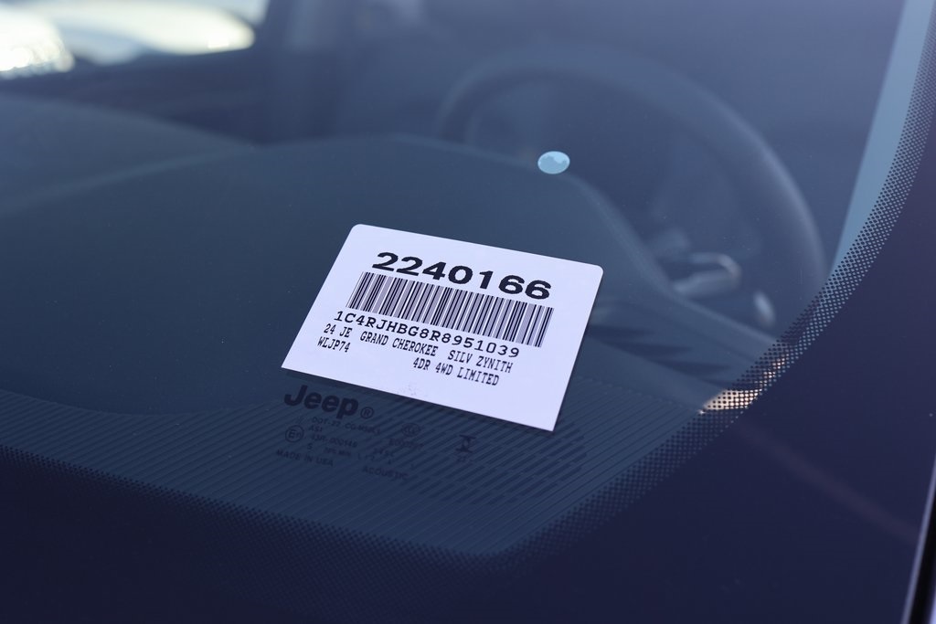 Silver Zynith 2024 Jeep Grand Cherokee Limited 4WD 8-Speed Automatic 3.6L V6 24V VVT 4WD.19/26 City/Highway MPG Price includes: $1000 - 2024 JEEP California BC Retail Consumer Cash 71CR1. Exp. 06/03/2024 $1000 - 2024 JEEP Retail Bonus Cash 24CRA1. Exp. 01/02/2025