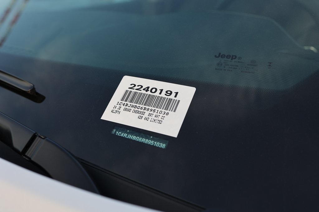 Bright White Clearcoat 2024 Jeep Grand Cherokee Limited 4WD 8-Speed Automatic 3.6L V6 24V VVT 4WD.19/26 City/Highway MPG Price includes: $1000 - 2024 California BC Retail Consumer Cash. Exp. 07/01/2024 $1000 - 2024 Retail Bonus Cash. Exp. 07/01/2024