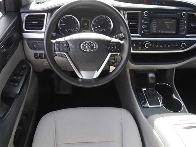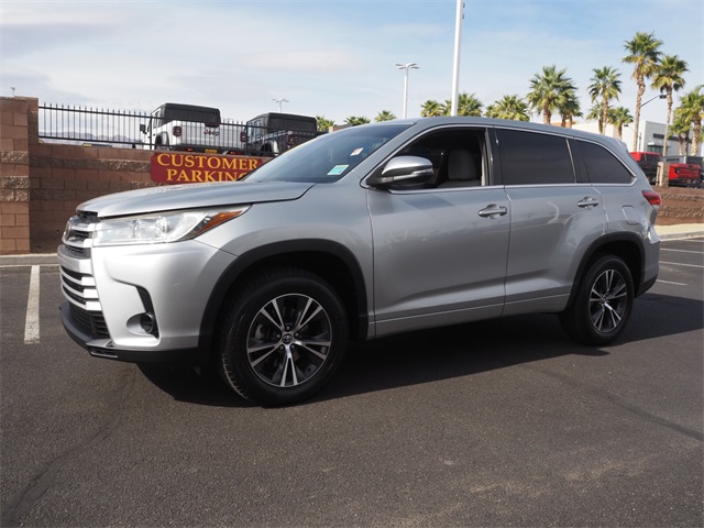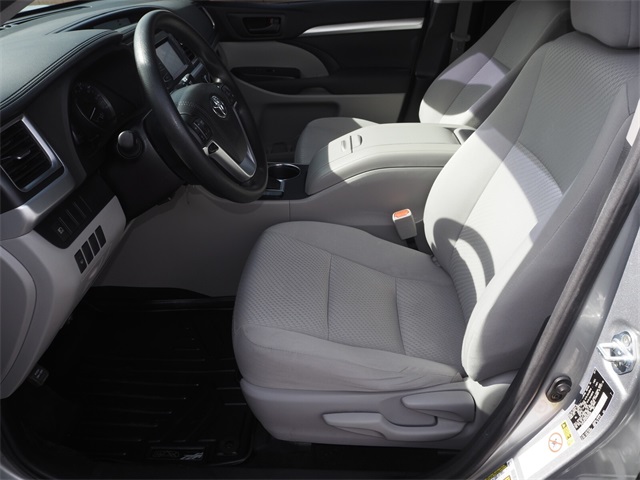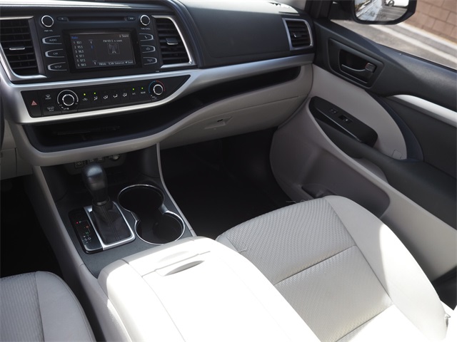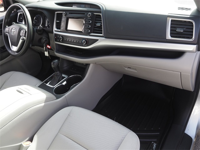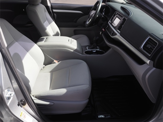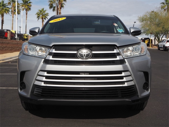 CARFAX One-Owner.20/27 City/Highway MPGSilver 2017 Toyota Highlander LE FWD 8-Speed Automatic Electronic with ECT-i 3.5L V6If you don't drive here, you can't save here!Awards: * 2017 KBB.com 12 Best Family Cars * 2017 KBB.com 10 Most Awarded Brands * 2017 KBB.com Best Resale Value AwardsPrice may not include recon fee. 3.003 Axle Ratio, 3rd row seats: split-bench, 4-Wheel Disc Brakes, 6 Speakers, ABS brakes, Air Conditioning, Alloy wheels, AM/FM radio, Auto High-beam Headlights, Brake assist, Bumpers: body-color, CD player, Delay-off headlights, Driver door bin, Driver vanity mirror, Dual front impact airbags, Dual front side impact airbags, Electronic Stability Control, Exterior Parking Camera Rear, Fabric Seat Trim, Four wheel independent suspension, Front anti-roll bar, Front Bucket Seats, Front Center Armrest, Front reading lights, Fully automatic headlights, Heated door mirrors, Illuminated entry, Knee airbag, Low tire pressure warning, Occupant sensing airbag, Outside temperature display, Overhead airbag, Overhead console, Panic alarm, Passenger door bin, Passenger vanity mirror, Power door mirrors, Power steering, Power windows, Radio: Entune Audio, Rear air conditioning, Rear anti-roll bar, Rear reading lights, Rear window defroster, Rear window wiper, Reclining 3rd row seat, Remote keyless entry, Speed control, Speed-sensing steering, Split folding rear seat, Spoiler, Steering wheel mounted audio controls, Tachometer, Telescoping steering wheel, Tilt steering wheel, Traction control, Trip computer, Turn signal indicator mirrors, Variably intermittent wipers, and Wheels: 18" Split 5-Spoke Machined-Face Alloy.