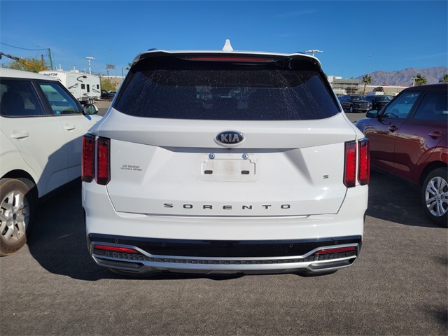 Recent Arrival!CARFAX One-Owner.Odometer is 881 miles below market average!24/29 City/Highway MPGGlacial White Pearl 2021 Kia Sorento S FWD 8-Speed Automatic 2.5L I4 DGI DOHC 16V LEV3-ULEV70 191hpIf you don't drive here, you can't save here!Price may not include recon fee. Panoramic Sunroof Package (Power Sunroof w/Power Sunshade), 18" Machine-Finished Alloy Wheels, 3.798 Axle Ratio, 3rd row seats: split-bench, 4-Wheel Disc Brakes, 6 Speakers, ABS brakes, Air Conditioning, Alloy wheels, AM/FM radio: SiriusXM, Apple CarPlay & Android Auto, Auto High-beam Headlights, Automatic temperature control, Brake assist, Bumpers: body-color, Carpeted Floor Mats, Delay-off headlights, Driver door bin, Driver vanity mirror, Dual front impact airbags, Dual front side impact airbags, Electronic Stability Control, Exterior Parking Camera Rear, Four wheel independent suspension, Front anti-roll bar, Front Bucket Seats, Front Center Armrest, Front dual zone A/C, Front reading lights, Fully automatic headlights, Heated door mirrors, Heated Front Bucket Seats, Heated front seats, Illuminated entry, Knee airbag, Leather Shift Knob, Leather steering wheel, Low tire pressure warning, Occupant sensing airbag, Outside temperature display, Overhead airbag, Overhead console, Panic alarm, Passenger door bin, Passenger vanity mirror, Power door mirrors, Power driver seat, Power steering, Power windows, Premium Leatherette Seat Trim, Radio data system, Radio: AM/FM Audio System, Rear air conditioning, Rear anti-roll bar, Rear Parking Sensors, Rear seat center armrest, Rear window defroster, Rear window wiper, Remote keyless entry, Roof rack: rails only, Security system, Speed control, Speed-sensing steering, Split folding rear seat, Spoiler, Steering wheel mounted audio controls, Tachometer, Telescoping steering wheel, Tilt steering wheel, Traction control, Trip computer, Turn signal indicator mirrors, and Variably intermittent wipers.