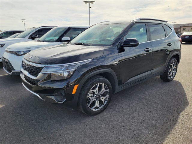 Recent Arrival!CARFAX One-Owner.27/31 City/Highway MPGCherry Black 2021 Kia Seltos EX AWD IVT 2.0L I4 MPIIf you don't drive here, you can't save here!Price may not include recon fee. Gray Interior Package, 17" Alloy Machine-Finished Wheels, 4-Wheel Disc Brakes, 6 Speakers, 6.052 Axle Ratio, ABS brakes, Air Conditioning, Alloy wheels, AM/FM radio, Apple CarPlay & Android Auto, Automatic temperature control, Brake assist, Bumpers: body-color, Carpeted Floor Mats, Delay-off headlights, Driver door bin, Driver vanity mirror, Dual front impact airbags, Dual front side impact airbags, Electronic Stability Control, Exterior Parking Camera Rear, Four wheel independent suspension, Front anti-roll bar, Front Bucket Seats, Front Center Armrest, Front fog lights, Front reading lights, Fully automatic headlights, Heated door mirrors, Heated Front Bucket Seats, Heated front seats, Illuminated entry, Leather Seat Trim, Leather Shift Knob, Low tire pressure warning, Occupant sensing airbag, Outside temperature display, Overhead airbag, Overhead console, Panic alarm, Passenger door bin, Passenger vanity mirror, Power door mirrors, Power driver seat, Power moonroof, Power steering, Power windows, Radio: AM/FM/MP3 Display Audio, Rear seat center armrest, Rear window defroster, Rear window wiper, Remote keyless entry, Roof rack: rails only, Security system, Speed control, Speed-sensing steering, Split folding rear seat, Spoiler, Steering wheel mounted audio controls, Tachometer, Telescoping steering wheel, Tilt steering wheel, Traction control, Trip computer, Turn signal indicator mirrors, and Variably intermittent wipers.