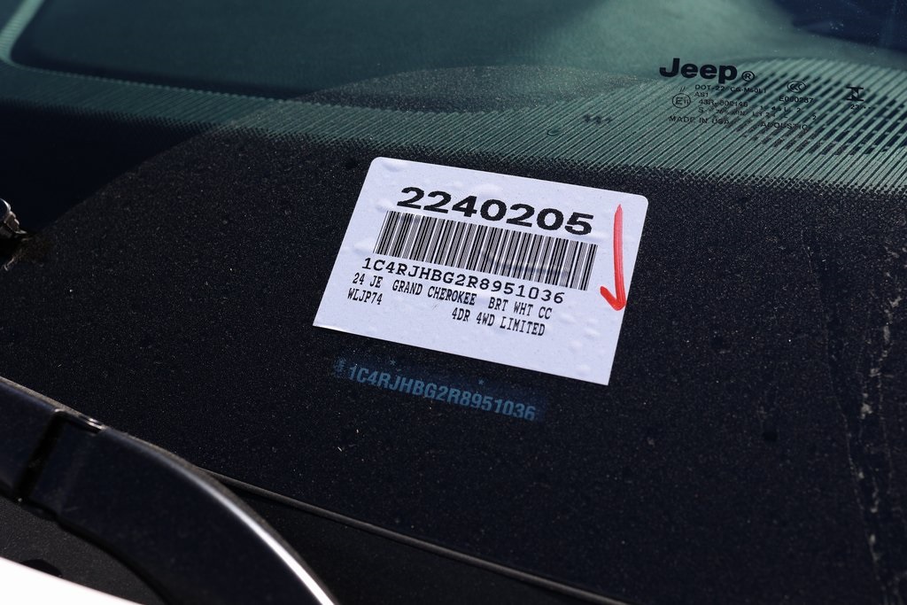 Bright White Clearcoat 2024 Jeep Grand Cherokee Limited 4WD 8-Speed Automatic 3.6L V6 24V VVT 4WD.19/26 City/Highway MPG Price includes: $1000 - 2024 JEEP California BC Retail Consumer Cash 71CR1. Exp. 06/03/2024 $1000 - 2024 JEEP Retail Bonus Cash 24CRA1. Exp. 06/03/2024