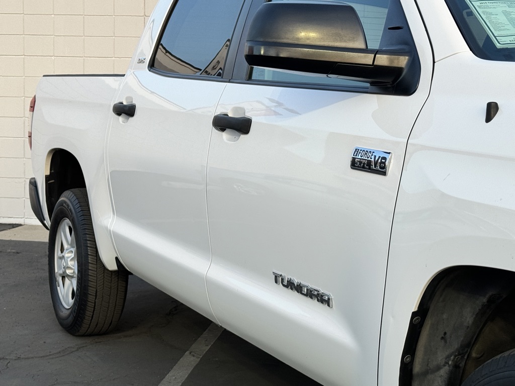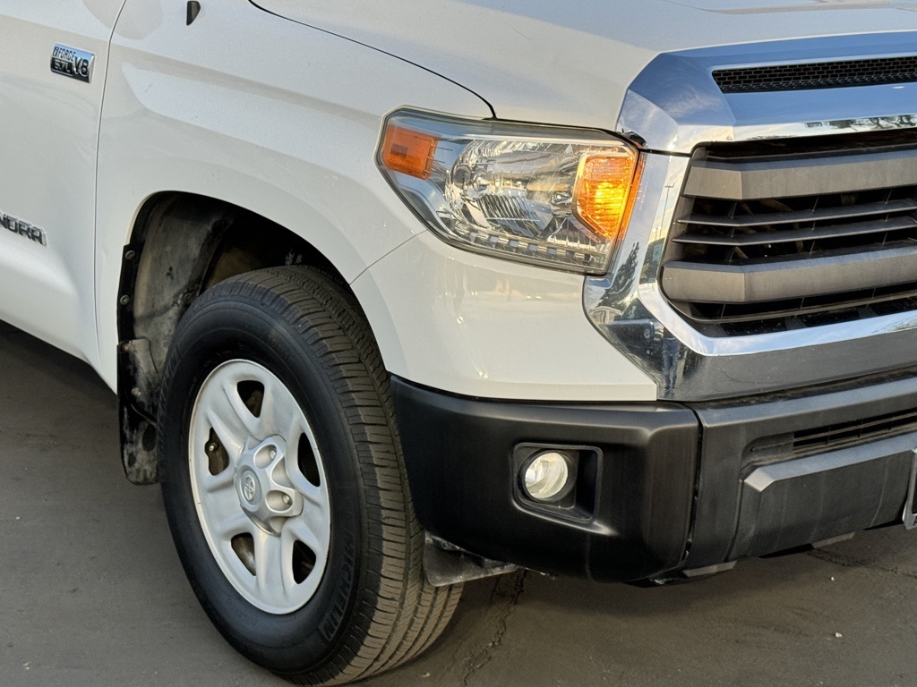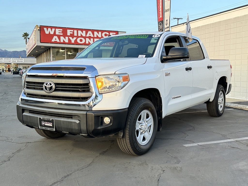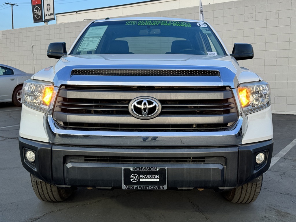 Recent Arrival! CARFAX One-Owner. Clean CARFAX.Odometer is 57372 miles below market average! Blk/Black Cloth, Anti-Theft Immobilizer w/Alarm, Compass, Electrochromic Rear-View Mirror, Front Bucket Seats, HomeLink Universal Transceiver, SR5 Upgrade Package, Urethane Tilt/Telescopic 4-Spoke Steering Wheel.White2015 Toyota Tundra SR5 RWD 6-Speed Automatic Electronic with Overdrive i-Force 5.7L V8 DOHC 32V LEV**********All Pricing and Advertised Prices for any/all vehicles offered for sale does not include dealer installed accessories which can be purchased for an additional cost.********** The Factory Rebates may not be available on this vehicle if you elect to take advantage of a Special Alternative APR or Special Lease program. Some Factory Rebates are California Resident specific and may vary for residents of other states. NO sales to Dealers, Brokers or Exporters. For out of state purchase, customers must be present to purchase. If shipping is required, dealership must facilitate; no exceptions. Please contact us for special Multi-Vehicle or Fleet pricing. Prices are plus government fees and taxes, any finance charges, $85 documentary fee, $29 electronic registration fee, any emission testing charge and $1.75 per new tire state tire fee. *** We make every effort to provide accurate information, but please verify before purchasing. Leasing & financing available on approved credit. Trade-ins accepted. Subject to prior sale.Awards: * ALG Residual Value Awards, Residual Value AwardsReviews: * The 2015 Tundra full-size pickup truck has allure with Toyota’s reputation for quality in general and this model’s excellent resale value in particular. It also has deep American roots: The truck was designed and is made in America. Source: KBB.com * Toyota's full-size truck, the Tundra is a hard-core workhorse with an edgy, and exciting look that stands out from the competition. Dependent on trim, it is available in 3 sizes: Regular Cab, Double cab, and CrewMax and engine possibilities that include a 4.0L V6 with 270HP, a 4.6L i-FORCE V8 with 310HP, or the absolutely incredible 5.7L V8 with 381 HP and 401 lb.-ft. of torque. As an option on all models, you can get it with 4WDemand part-time 4WD with electronically controlled transfer case, Automatic Limited-Slip Differential and Traction Control. For the exterior, it has a hood that is higher, a grille that is wider and with a different look for each of the 5 available trims. The Tundra's body has a much more aggressive look overall with strong chiseled angles, newly squared off fenders, and a restyled tailgate with a large embossed Tundra logo and an integrated spoiler. Bluetooth and a Backup camera now come standard on all models. The Base Model SR comes with the Entune audio system with a 6.1-inch touch-screen, a USB port, and cruise control. Step up to the SR5 trim and gain a 7-inch touch-screen, HD Radio, and a manual sliding window in the rear. In the Limited trim, enjoy power and heated leather front bucket seats, navigation and dual-zone climate control. The Platinum adds even more with LED daytime running lights, a power tilt/slide moonroof, Entune Premium JBL Audio with App Suite and Navigation, 20-inch alloy wheels, and parking assist sonar. The 1794 Edition, which is Western in theme, is in honor of the founding year of the Texas ranch where the factory that builds the Tundra now sits. Having many of the same features as the platinum, it uses ultra-suede accents, saddle brown leather, and wood-style trim. Source: The Manufacturer Summary * Strong V8 powertrains; large double cab with traditional rear doors; colossal CrewMax cab; unique off-road-themed TRD Pro model. Source: Edmunds