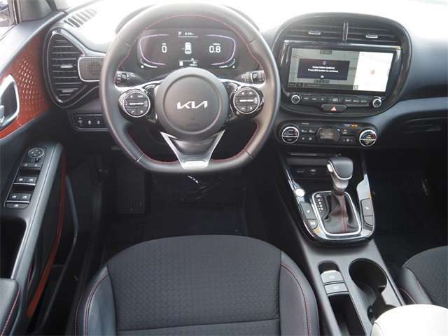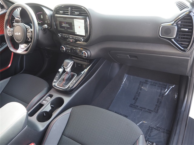 Recent Arrival!CARFAX One-Owner.28/33 City/Highway MPGSnow White Pearl 2023 Kia Soul GT-Line FWD IVT 2.0L I4 DOHCIf you don't drive here, you can't save here!Price may not include recon fee. GT-Line Technology Package (10-Way Power Driver's Seat w/Lumbar Support, Cargo Cover, Dual Level Cargo Board, Electronic Parking Brake, Forward Collision Avoidance-Assist - Cyclist, harman/kardon Premium Audio, Heated Front Seats, Intelligent Speed Limit Assist (ISLA), LED Fog Lights, LED Headlights, Positioning Lights & Tail Lights, Navigation-Based Smart Cruise Control (NSCC-C), and Speaker Lights), Kia Certified Pre-Owned Certified, 18" Alloy Wheels, 4-Wheel Disc Brakes, 6 Speakers, ABS brakes, Air Conditioning, Alloy wheels, AM/FM radio: SiriusXM, Apple CarPlay & Android Auto, Auto High-beam Headlights, Automatic temperature control, Brake assist, Bumpers: body-color, Carpeted Floor Mats, Combination Cloth/Artificial Leather Seat Trim, Compass, Delay-off headlights, Driver door bin, Driver vanity mirror, Dual front impact airbags, Dual front side impact airbags, Electronic Stability Control, Emergency communication system, Exterior Parking Camera Rear, Front anti-roll bar, Front Bucket Seats, Front Center Armrest, Front dual zone A/C, Front reading lights, Front wheel independent suspension, Fully automatic headlights, Heated door mirrors, Illuminated entry, Leather Shift Knob, Leather steering wheel, Low tire pressure warning, Navigation System, Occupant sensing airbag, Outside temperature display, Overhead airbag, Overhead console, Panic alarm, Passenger door bin, Passenger vanity mirror, Power door mirrors, Power moonroof, Power steering, Power windows, Radio data system, Radio: AM/FM/MP3/HD Audio System, Rear seat center armrest, Rear window defroster, Rear window wiper, Remote keyless entry, Speed control, Speed-sensing steering, Split folding rear seat, Sport steering wheel, Steering wheel mounted audio controls, Tachometer, Telescoping steering wheel, Tilt steering wheel, Traction control, Trip computer, Turn signal indicator mirrors, and Variably intermittent wipers.