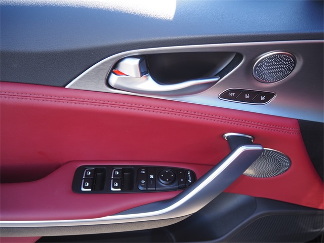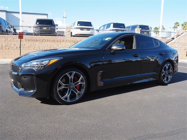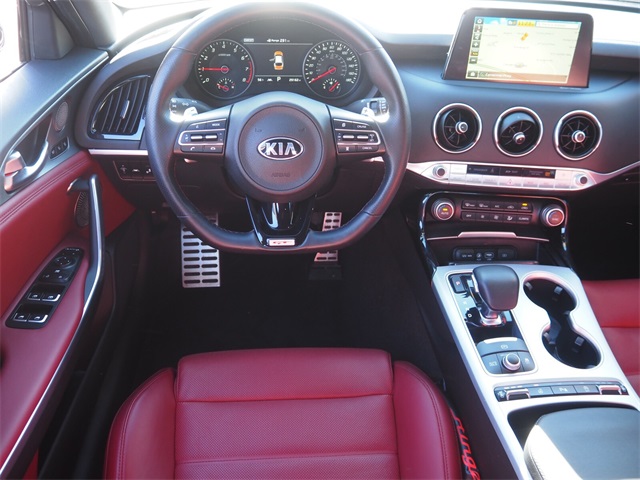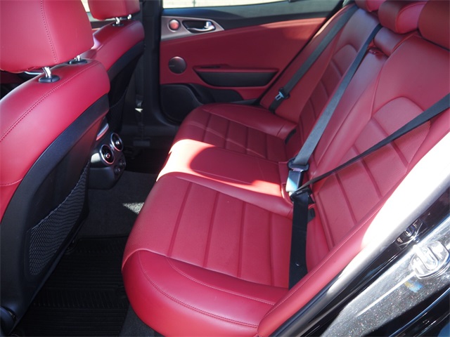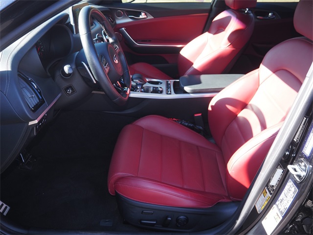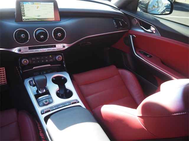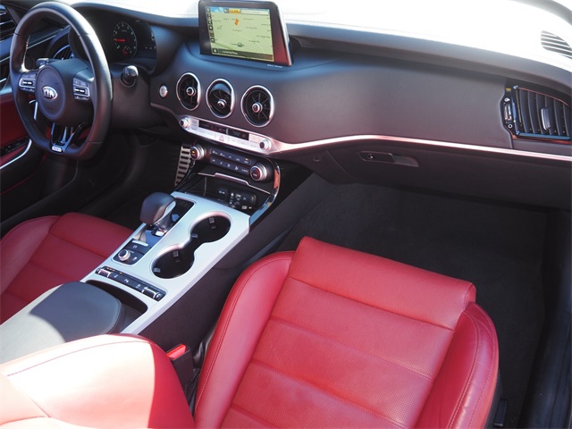 Recent Arrival!CARFAX One-Owner.Odometer is 27008 miles below market average!Aurora Black 2018 Kia Stinger GT2 AWD 8-Speed Automatic 3.3L V6If you don't drive here, you can't save here!Awards: * JD Power Automotive Performance, Execution and Layout (APEAL) Study * 2018 KBB.com 10 Favorite New-for-2018 CarsPrice may not include recon fee. Red Interior Color Pack (Red Leather Seat Trim), Kia Certified Pre-Owned Certified, 15 Speakers, 4-Wheel Disc Brakes, ABS brakes, Air Conditioning, Alloy wheels, AM/FM radio: SiriusXM, Anti-whiplash front head restraints, Apple CarPlay & Android Auto, Auto High-beam Headlights, Auto tilt-away steering wheel, Auto-dimming door mirrors, Auto-dimming Rear-View mirror, Automatic temperature control, Brake assist, Bumpers: body-color, Compass, Delay-off headlights, Driver door bin, Driver vanity mirror, Dual front impact airbags, Dual front side impact airbags, Electronic Stability Control, Emergency communication system: UVO eServices, Exterior Parking Camera Rear, Four wheel independent suspension, Front anti-roll bar, Front Bucket Seats, Front Center Armrest, Front dual zone A/C, Front reading lights, Fully automatic headlights, Garage door transmitter: HomeLink, harman/kardon® Speakers, Heads-Up Display, Heated & Ventilated Front Bucket Seats, Heated door mirrors, Heated front seats, Heated steering wheel, Illuminated entry, Knee airbag, Low tire pressure warning, Memory seat, Nappa Leather Seat Trim, Navigation System, Occupant sensing airbag, Outside temperature display, Overhead airbag, Overhead console, Panic alarm, Passenger door bin, Passenger vanity mirror, Power door mirrors, Power driver seat, Power Liftgate, Power moonroof, Power passenger seat, Power steering, Power windows, Radio: AM/FM/MP3/HD/SiriusXM harmon/kardon Audio, Rain sensing wipers, Rear air conditioning, Rear anti-roll bar, Rear reading lights, Rear seat center armrest, Rear window defroster, Remote keyless entry, Security system, Speed control, Speed-sensing steering, Speed-Sensitive Wipers, Split folding rear seat, Spoiler, Sport steering wheel, Steering wheel memory, Steering wheel mounted audio controls, Tachometer, Telescoping steering wheel, Tilt steering wheel, Traction control, Trip computer, Turn signal indicator mirrors, Variably intermittent wipers, Ventilated front seats, and Wheels: 19" x 8J Front & 19" x 8.5J Rear Alloy.