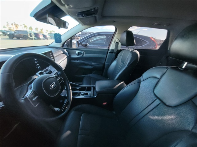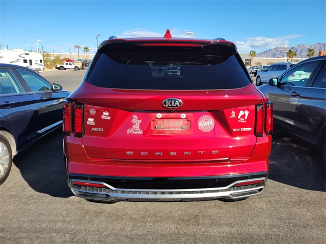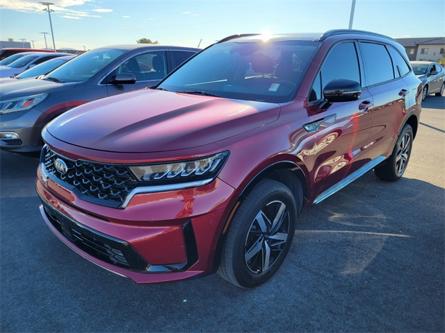 Recent Arrival!CARFAX One-Owner.21/28 City/Highway MPGPassion Red Tintcoat 2021 Kia Sorento EX AWD 8-Speed DCT 2.5L I4 DGI Turbocharged DOHC 16V LEV3-ULEV70 281hp AWD.If you don't drive here, you can't save here!Price may not include recon fee. Panoramic Sunroof Package (Power Sunroof w/Power Sunshade), Kia Certified Pre-Owned Certified, AWD, 18" Machine-Finished Alloy Wheels, 3.316 Axle Ratio, 3rd row seats: split-bench, 4-Wheel Disc Brakes, 6 Speakers, ABS brakes, Air Conditioning, Alloy wheels, AM/FM radio: SiriusXM, Apple CarPlay & Android Auto, Auto High-beam Headlights, Automatic temperature control, Brake assist, Bumpers: body-color, Carpeted Floor Mats, Delay-off headlights, Driver door bin, Driver vanity mirror, Dual front impact airbags, Dual front side impact airbags, Electronic Stability Control, Exterior Parking Camera Rear, Four wheel independent suspension, Front anti-roll bar, Front Bucket Seats, Front Center Armrest, Front dual zone A/C, Front fog lights, Front reading lights, Fully automatic headlights, Heated door mirrors, Heated Front Bucket Seats, Heated front seats, Illuminated entry, Knee airbag, Leather Shift Knob, Leather steering wheel, Low tire pressure warning, Occupant sensing airbag, Outside temperature display, Overhead airbag, Overhead console, Panic alarm, Passenger door bin, Passenger vanity mirror, Power door mirrors, Power driver seat, Power Liftgate, Power steering, Power windows, Premium Leatherette Seat Trim, Radio data system, Radio: AM/FM Audio System, Rear air conditioning, Rear anti-roll bar, Rear reading lights, Rear window defroster, Rear window wiper, Remote keyless entry, Roof rack: rails only, Security system, Speed control, Speed-sensing steering, Split folding rear seat, Spoiler, Steering wheel mounted audio controls, Tachometer, Telescoping steering wheel, Tilt steering wheel, Traction control, Trip computer, Turn signal indicator mirrors, and Variably intermittent wipers.